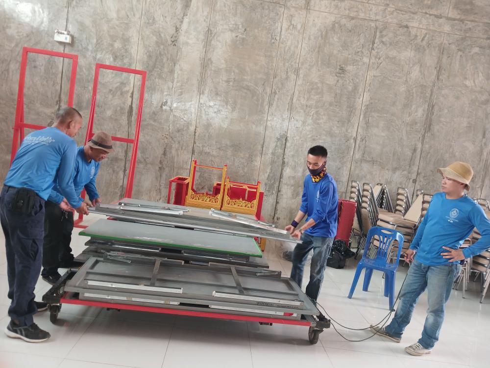 เก็บโต๊ะเก้าอี้ ลานด้านหน้าอนุสาวรีย์ หลังเสร็จสิ้นงาน ของคณะว.จ