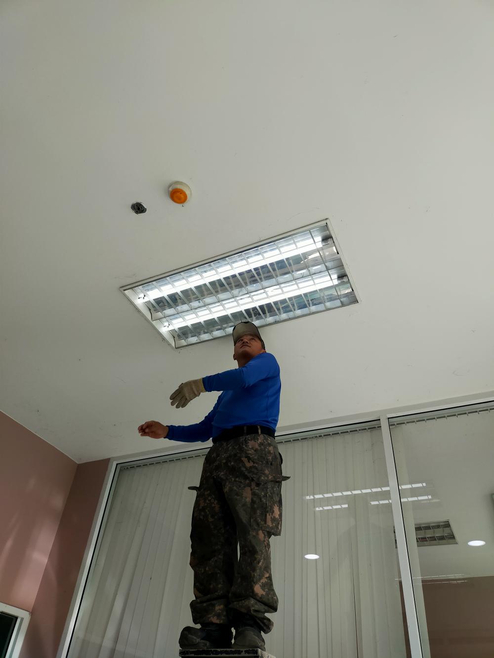 กองการสื่อสารฯ ตรวจสอบและซ่อมแซมระบบไฟฟ้าห้องสตูดิโอถ่ายภาพ กองการสื่อสารองค์กรและประชาสัมพันธ์ อาคารสำนักงานอธิการบดี