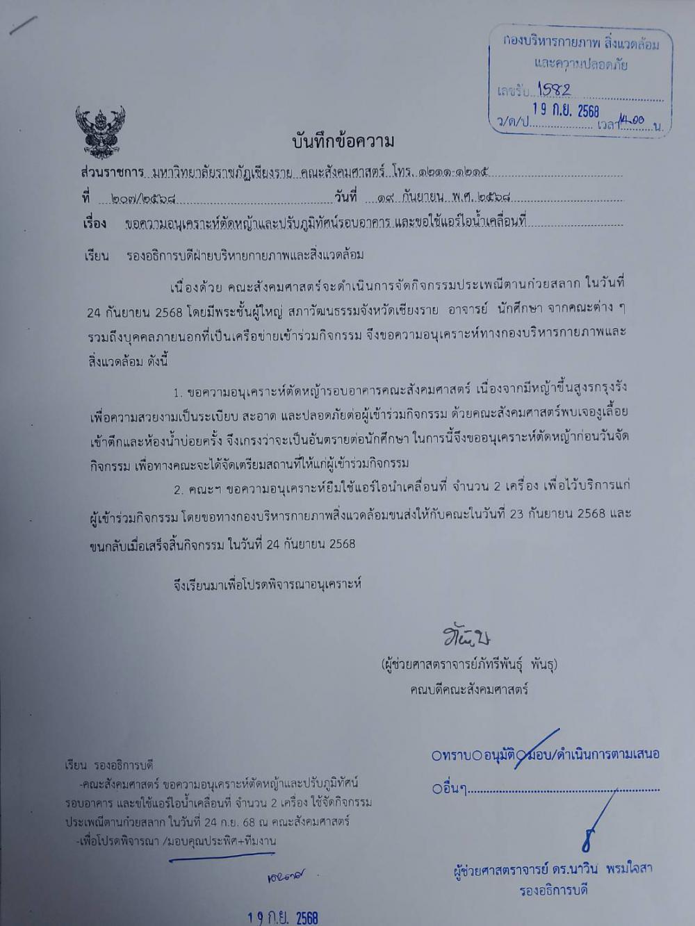 22 กันยายน 2568 07:56:02 นายประพิศ วงค์คำเครื่อง อัพเดทเป็นรอดำเนินการ