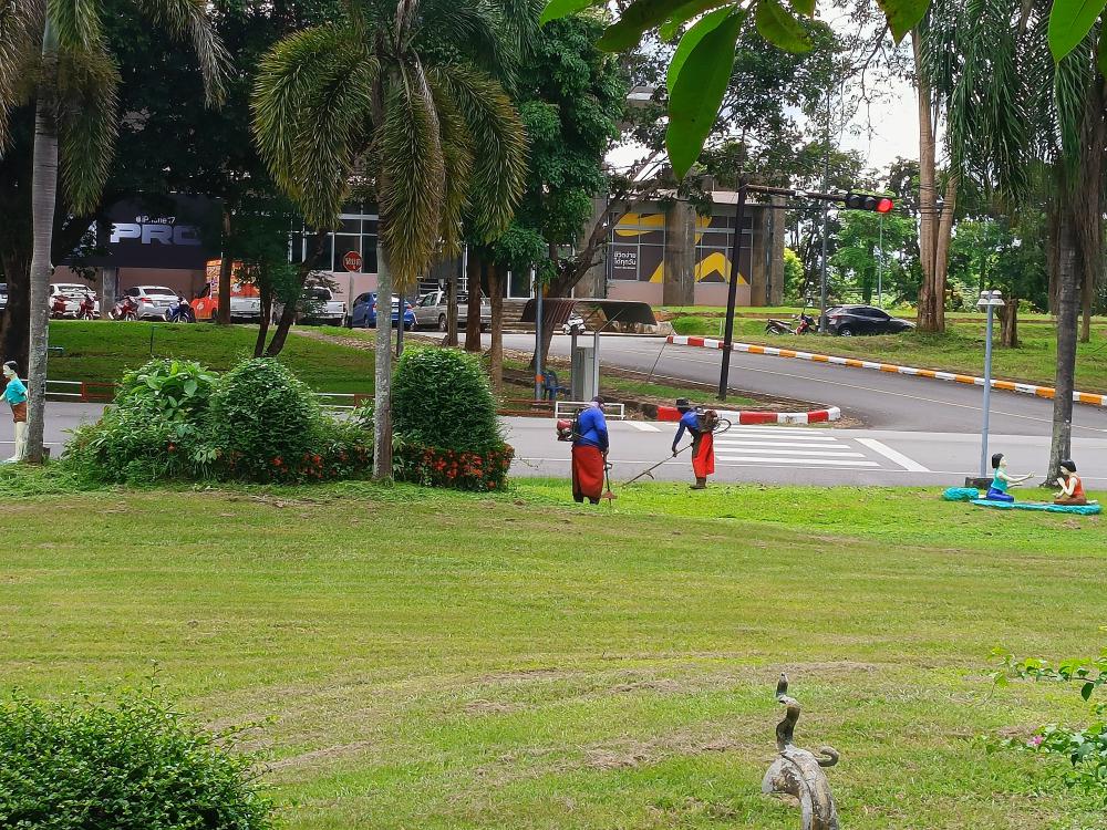 กองบริหารกายภาพฯ ตัดหญ้าส่งเสริมเก่าและ บริเวณโดยรอบศูนย์การรู้ตลอดชีวิต