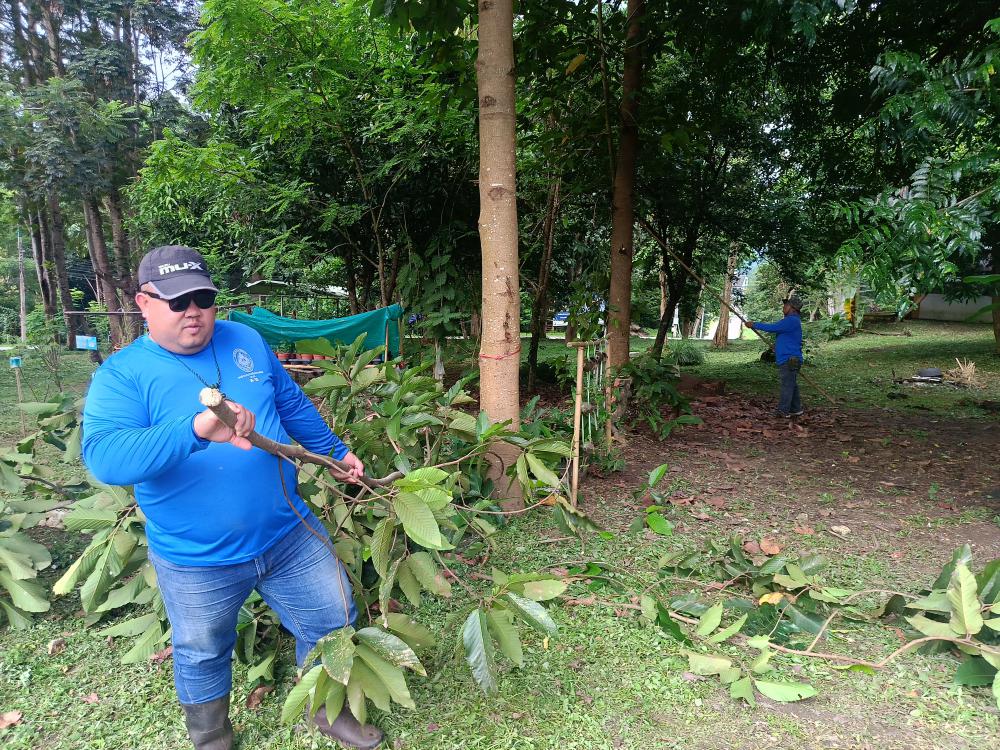 คณะสังคมศาสตร์ ตัดแต่งต้นไม้ที่ยืนต้นสูง บริเวณด้านหลังและด้านข้างอาคารคณะสังคมศาสตร์