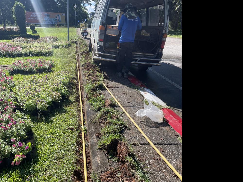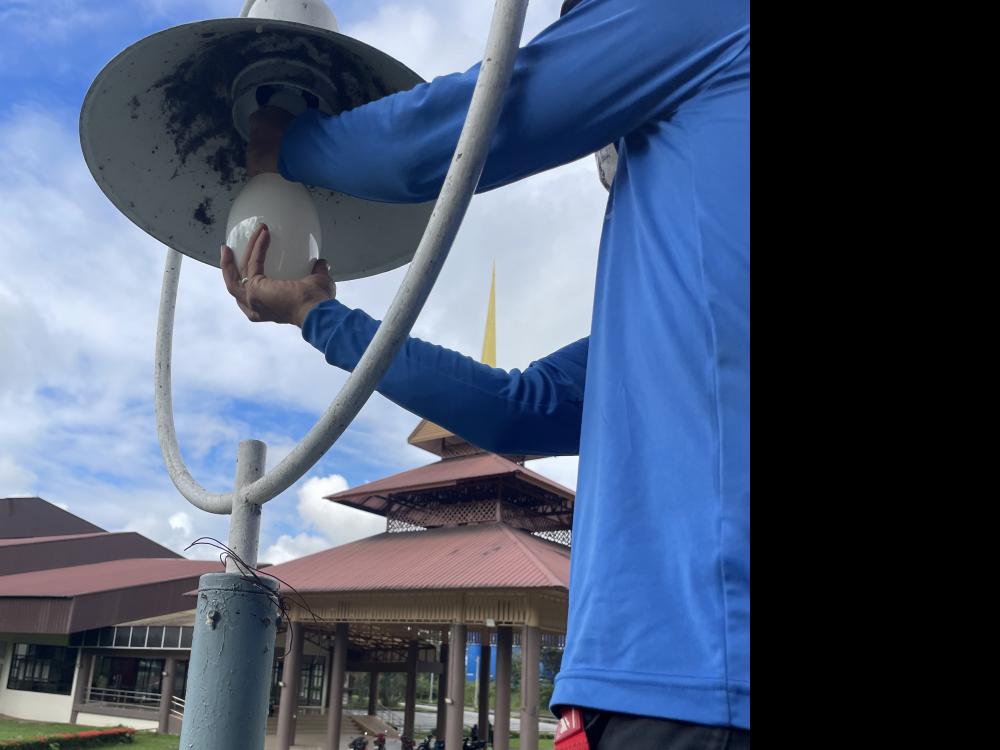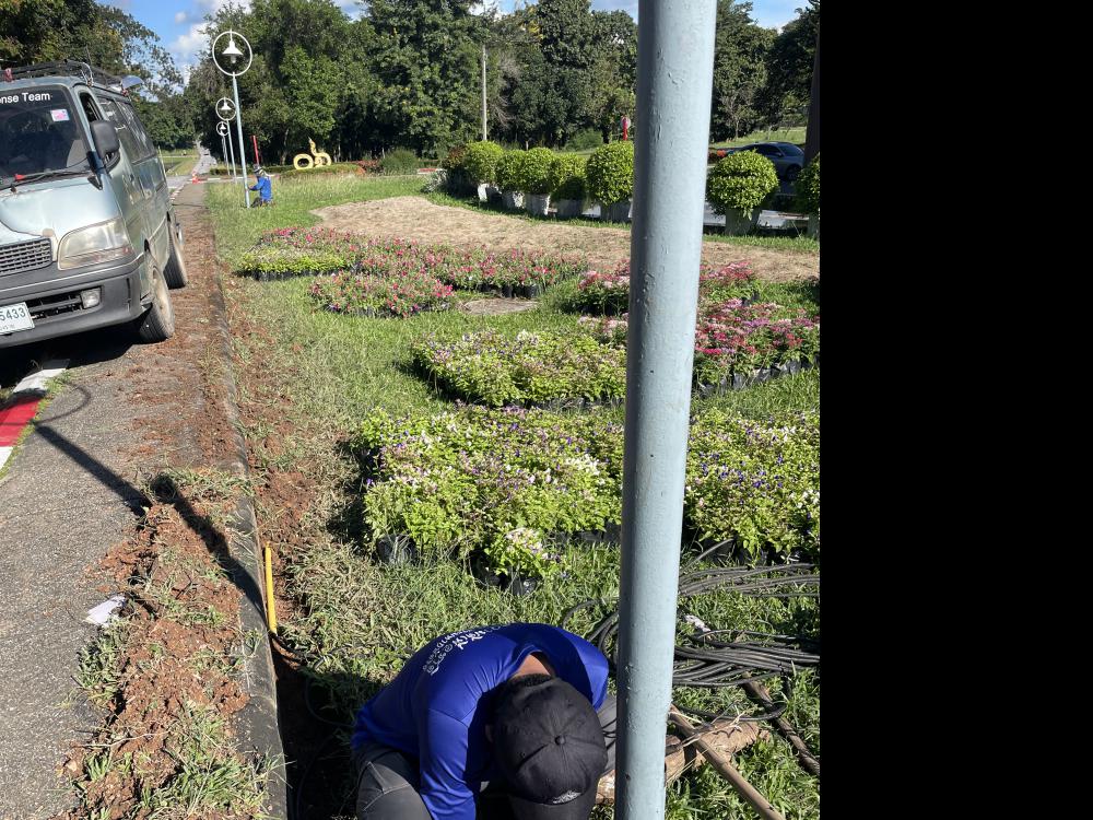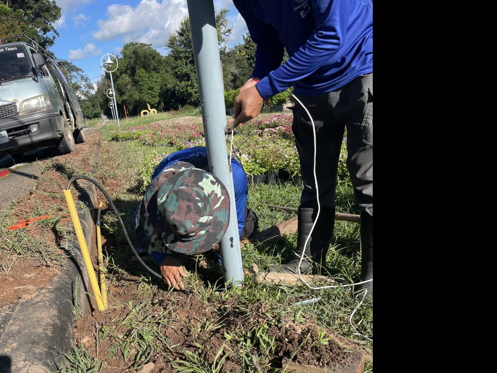กองบริหารกายภาพฯ ตรวจเช็คซ่อมแซมสายไฟขาดใต้ดินระหว่างเสาไฟกิ่งหน้าหอประชุมใหญ่และเดินสายไฟใหม่ทำการเปลี่ยนหลอดที่ขาด