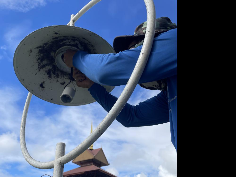 ตรวจเช็คเช็คซ่อมแซมไฟกิ่งโคมระฆัง ถนนเส้นสี่แยกยุพราชถึงหน้าหอประชุมใหญ่