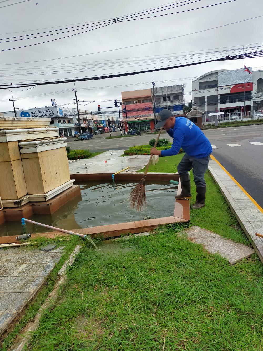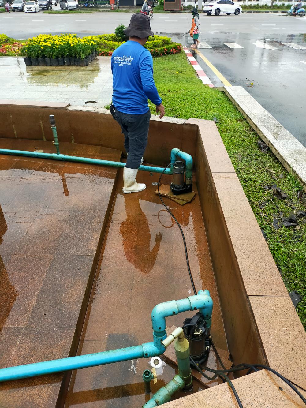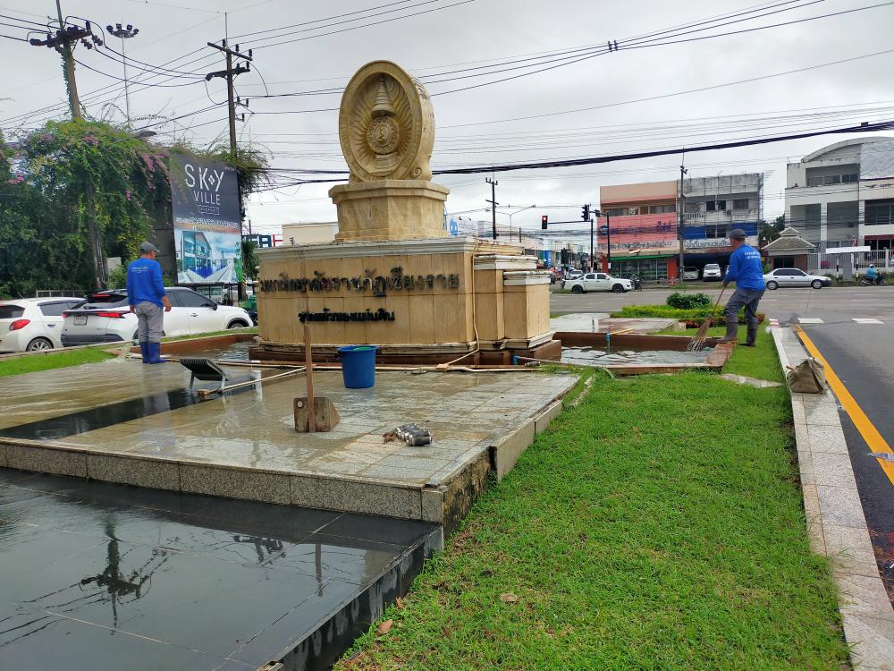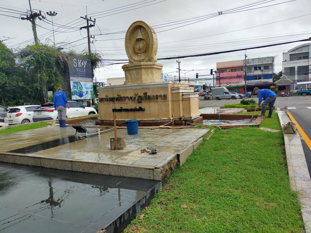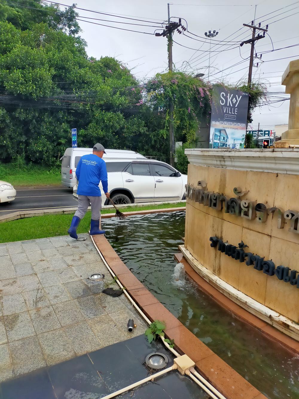ล้างน้ำพุและเช็คปั้มน้ำป้ายทางเข้ามหาวิทยาลัย