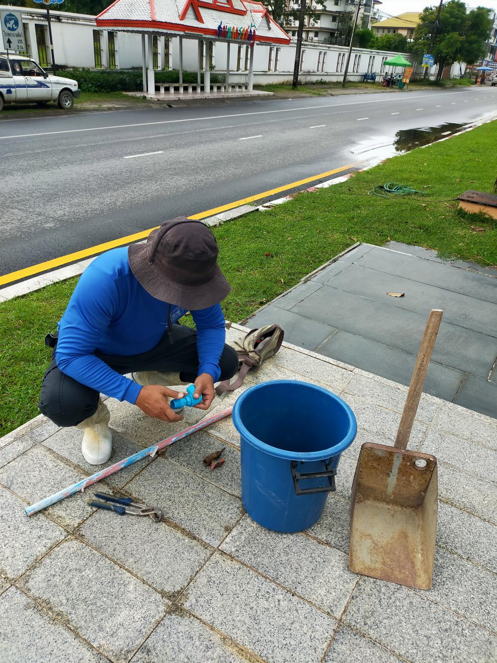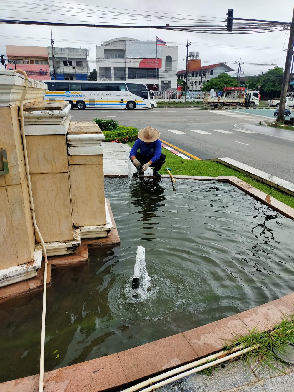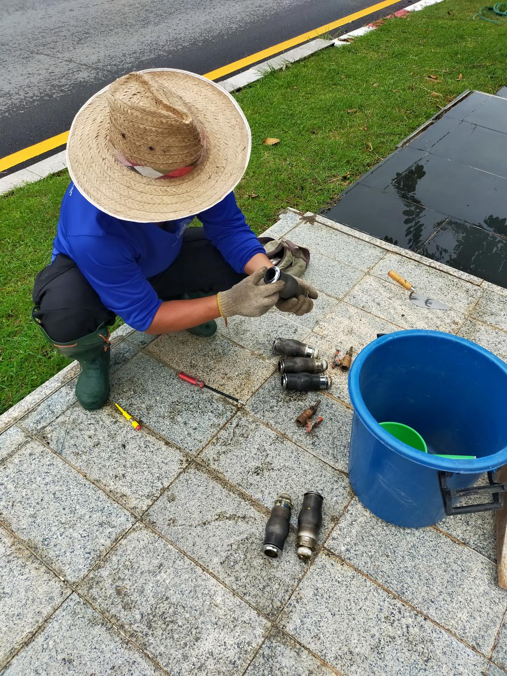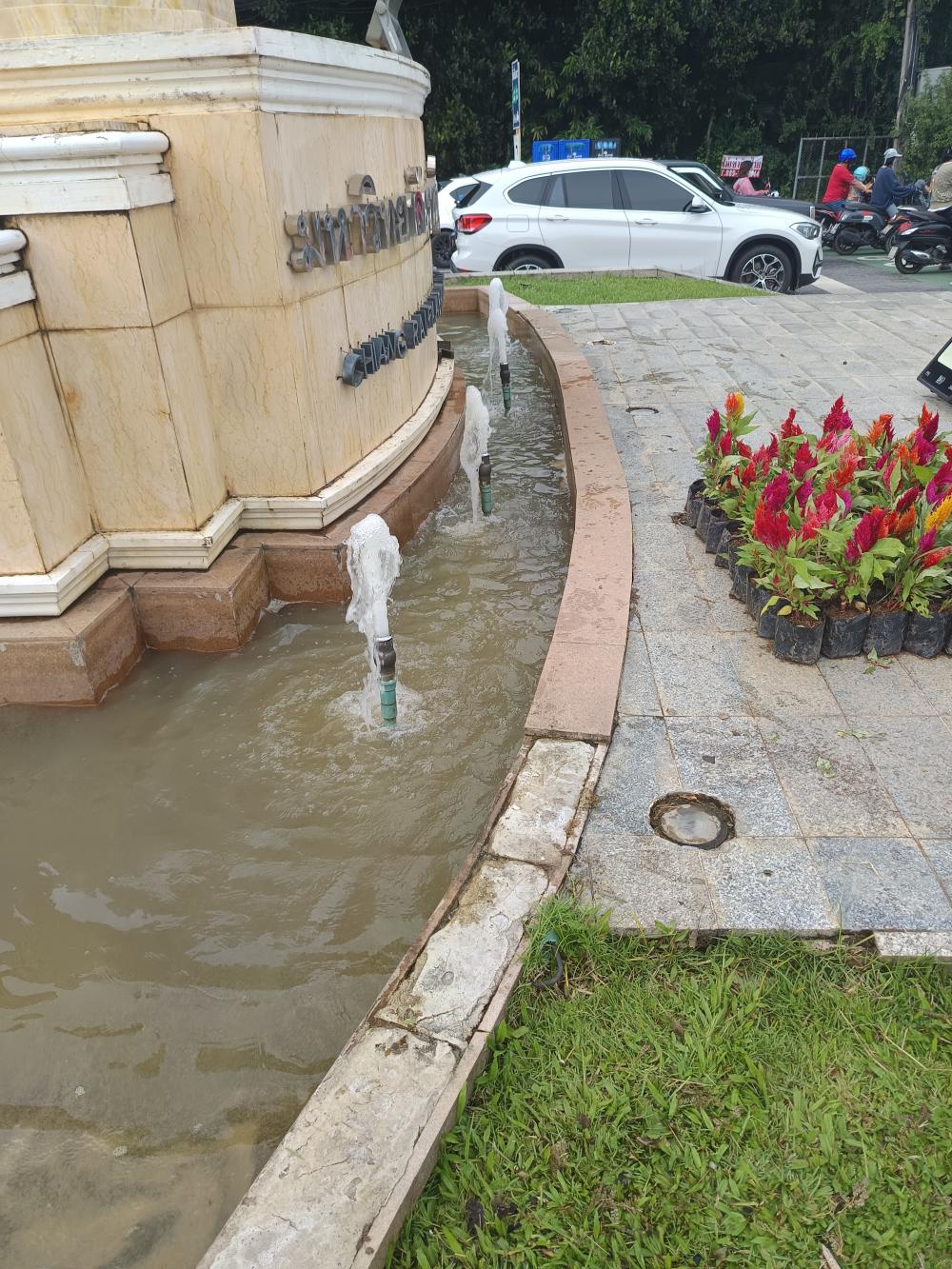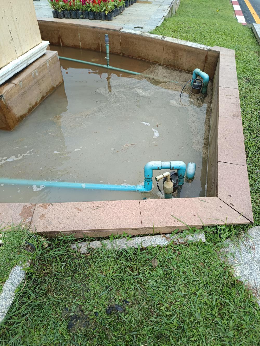 ล้างน้ำพุและเช็คปั้มน้ำป้ายทางเข้ามหาวิทยาลัย