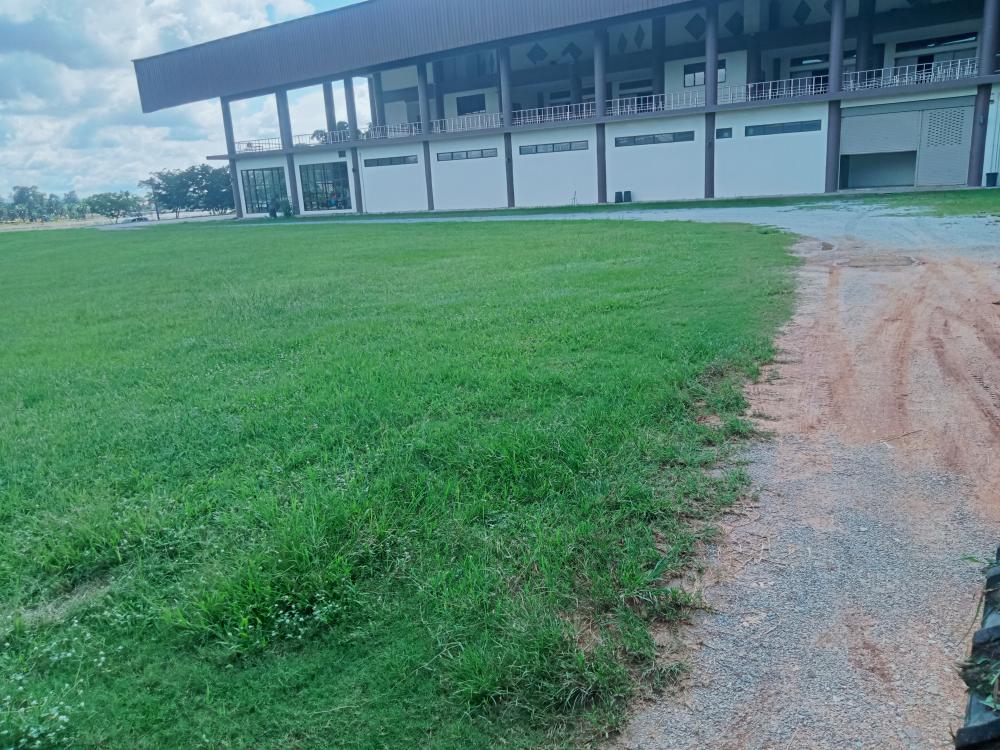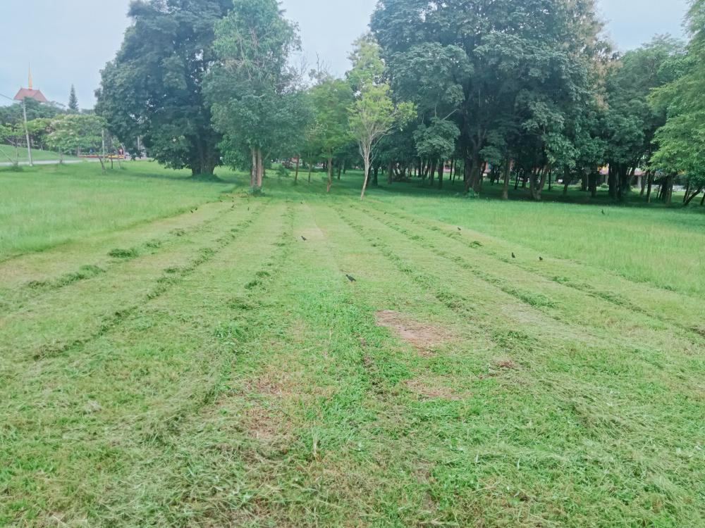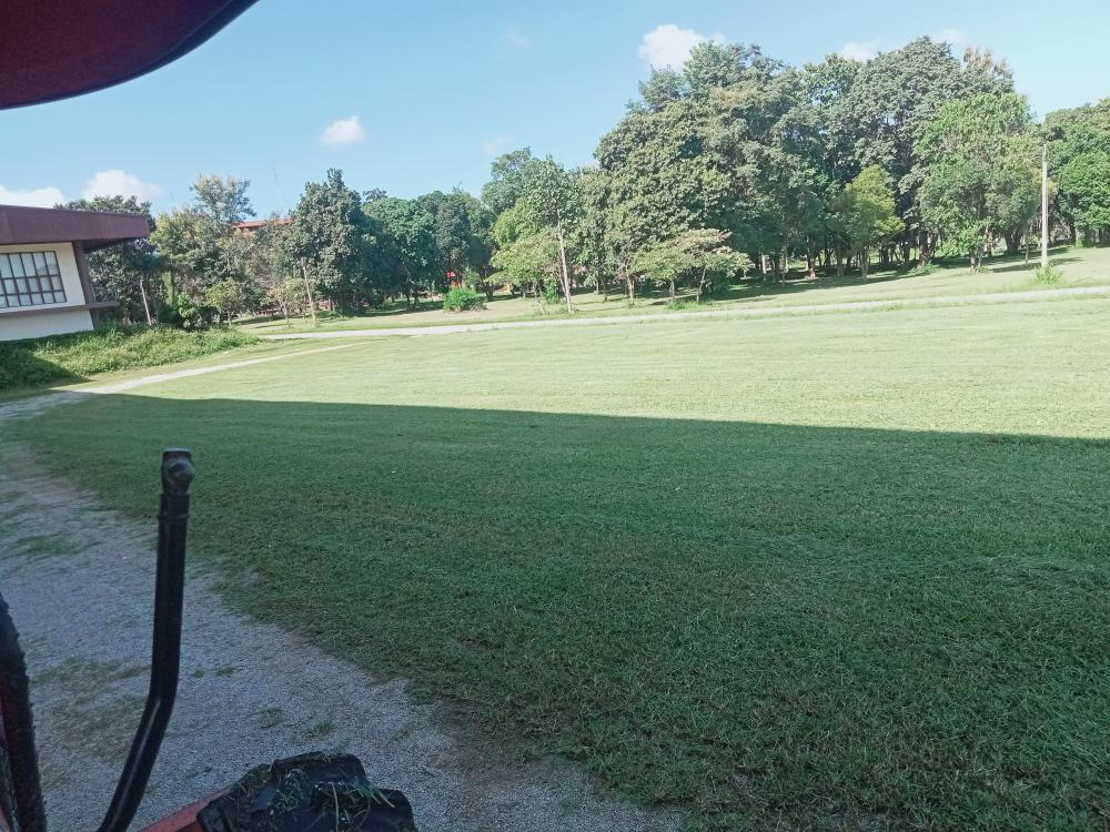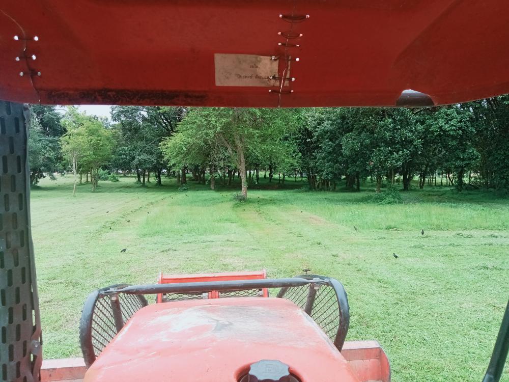 ขับแทรกเตอร์ตัดหญ้าลานลิ้นจี่ ข้างหอประชุมใหญ่