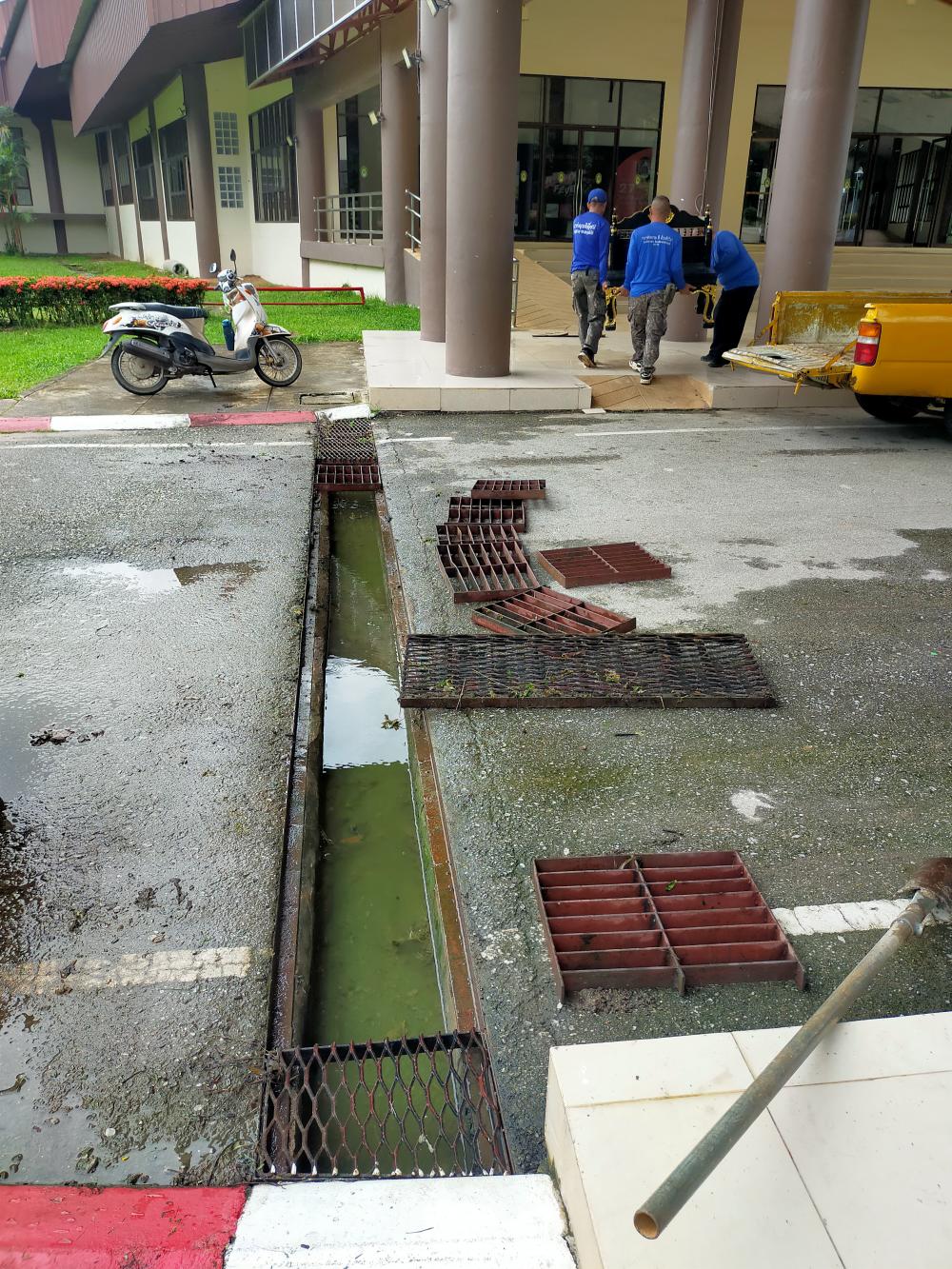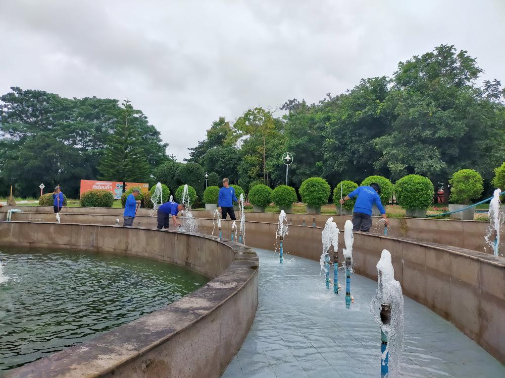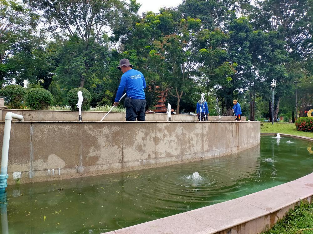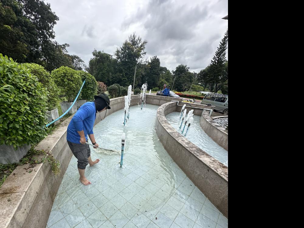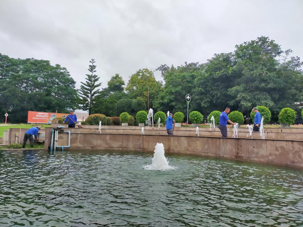 ล้างน้ำพุและเช็คปั้มน้ำหอประชุมใหญ่