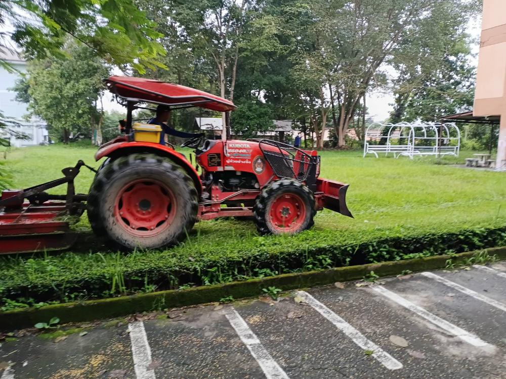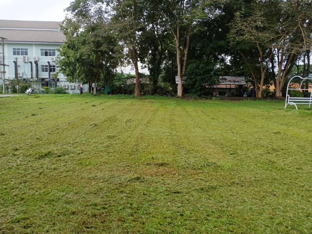 ตัดแต่งต้นไม้ด้านหน้าทางเข้าตึกและตัดหญ้าโดยรอบอาคารศูนย์เทคโนโลยีการศึกษา