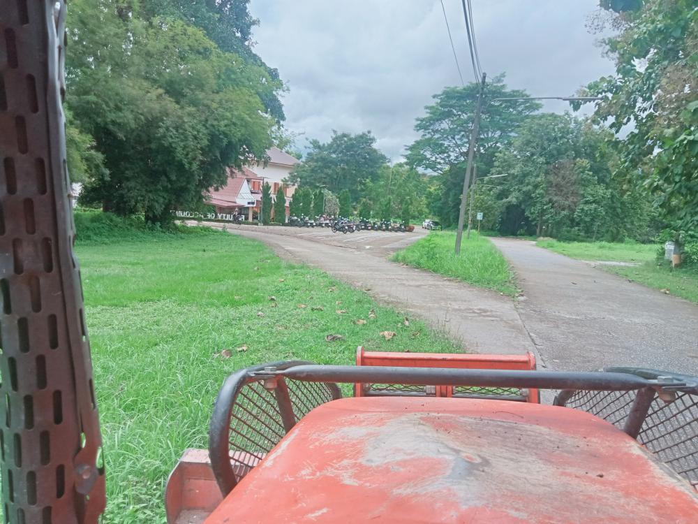 ขับแทรกเตอร์ตัดหญ้าข้างถนน ทางเข้าคณะบัญชี