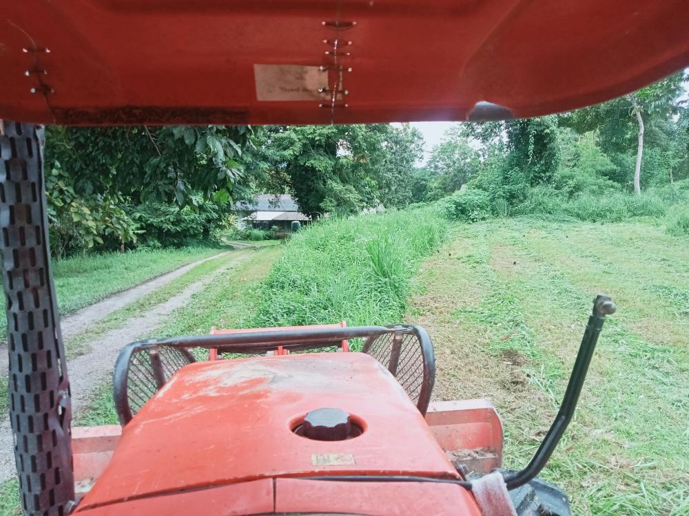 กองบริหารกายภาพฯ ขับแทรกเตอร์ตัดหญ้าข้างถนน ทางเข้าคณะบัญชี