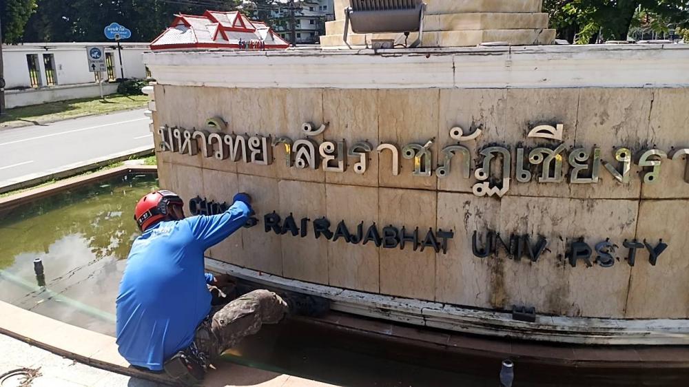 ซ่อมแซมป้ายตัวหนังสือด้านหน้ามหาวิทยาลัย