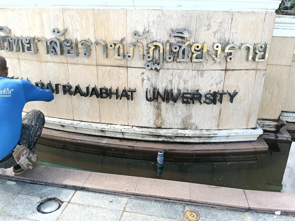ซ่อมแซมป้ายตัวหนังสือ ด้านหน้ามหาวิทยาลัย