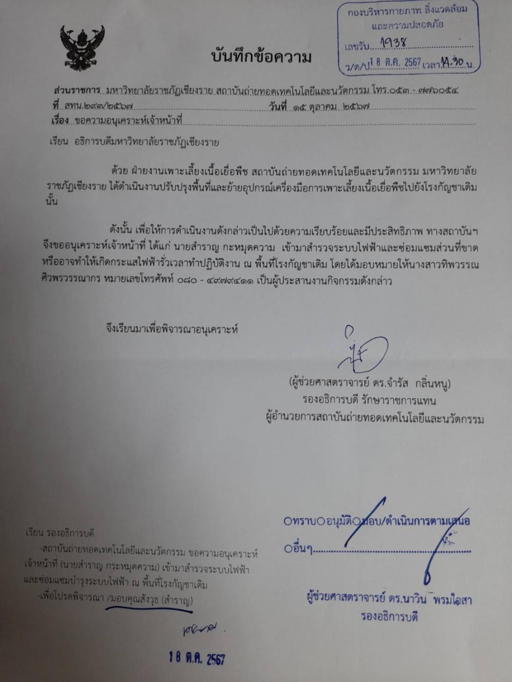 สถาบันถ่ายทอดเทคโนโลยีนวัตกรรม ตรวจเช็คระบบไฟฟ้าโรงกัญชาให้กับศูนย์เพาะเลี้ยงเนื้อเยื้อ