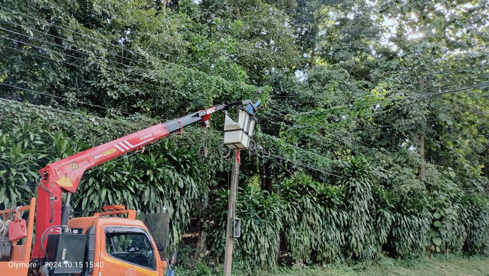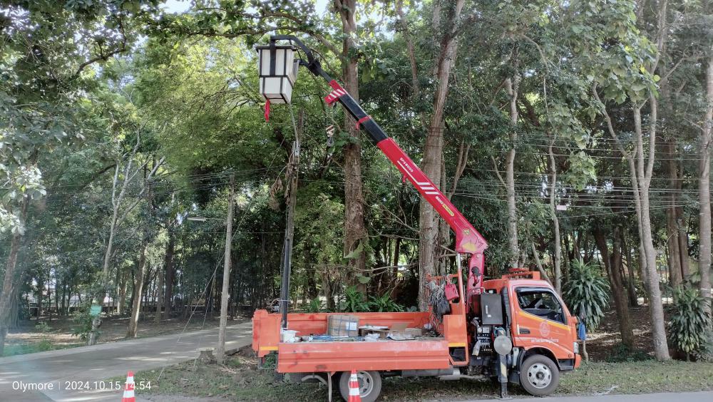 กองบริหารกายภาพฯ เปลี่ยนไฟกิ่งถนนเส้นหน้าศูนย์สุขภาพถึงประตู 2