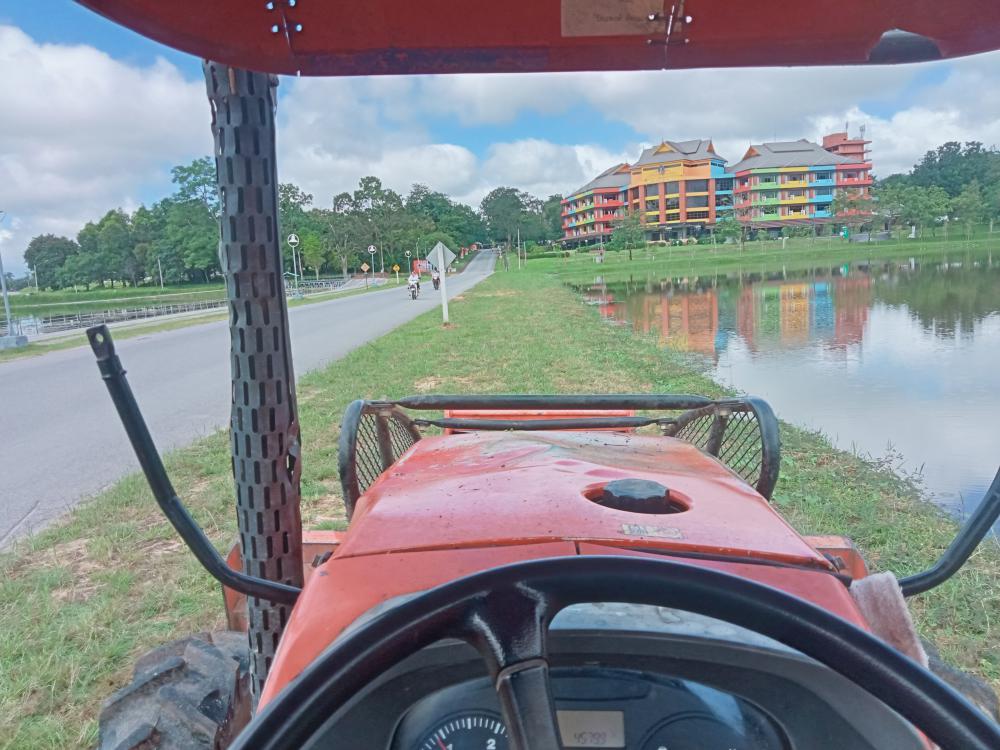 ขับแทรกเตอร์ตัดหญ้าเตรียมงานวันรับปริญญา