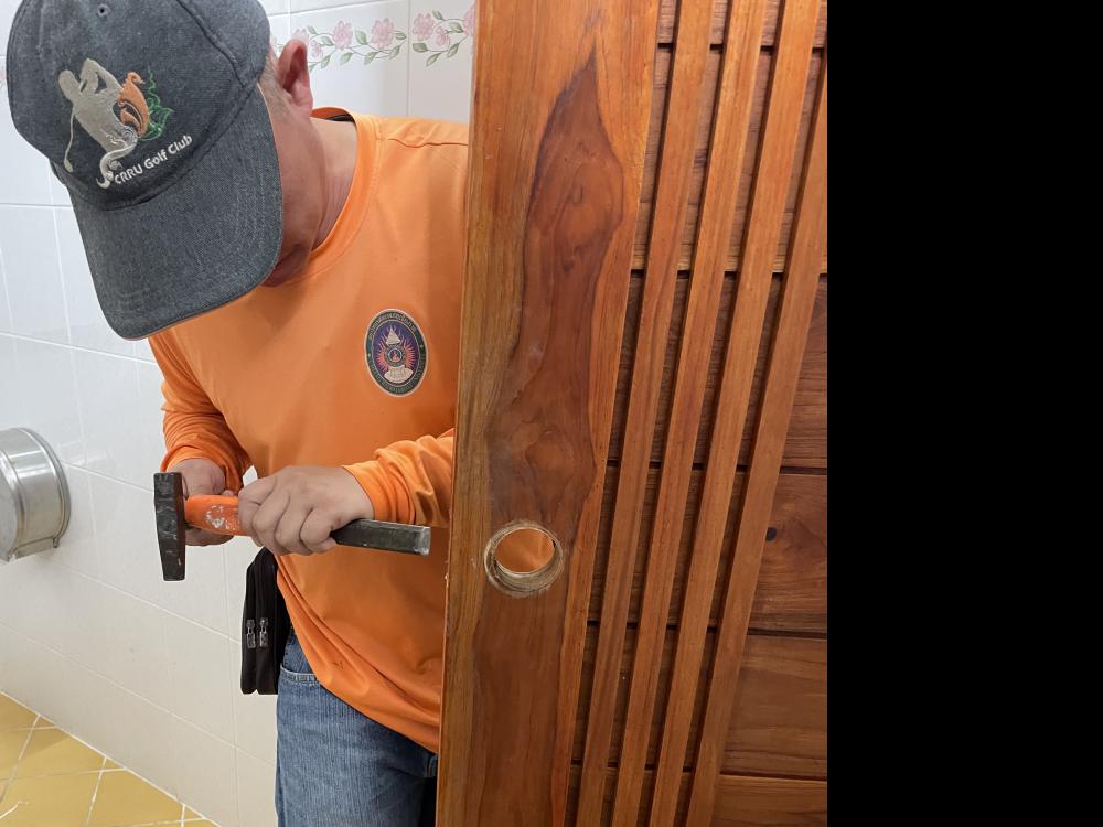 กองบริหารกายภาพฯ ซ้อมเปลี่ยนดัดแปลงชุดน้ำดีสายชำระและถังน้ำชักโครกเนื่องจากตันน้ำไม่เติมชักโครกและดัดแปลงเปลี่ยนลูกบิดประตูห้องน้ำ VIP