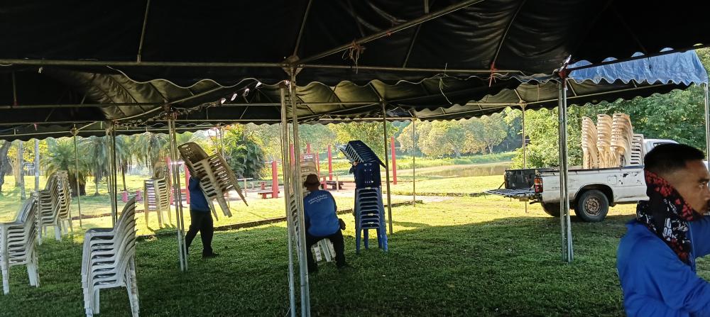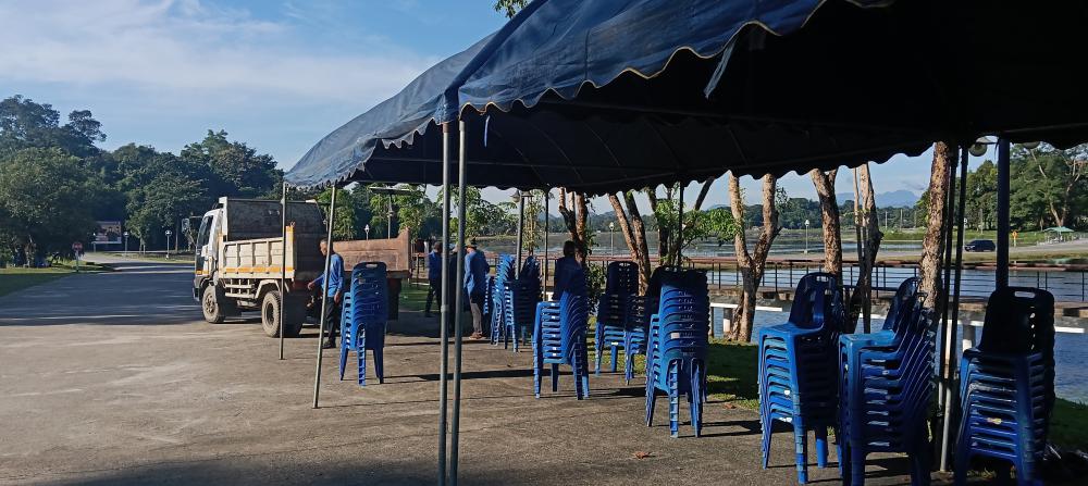 เก็บของต่างๆหลังเสร็จสิ้น งานซ้อมใหญ่ พระราชทาน ซ้อมปริญญา