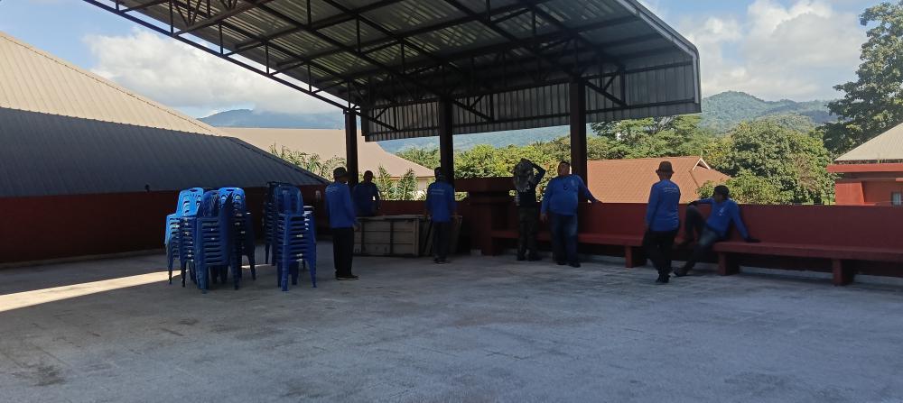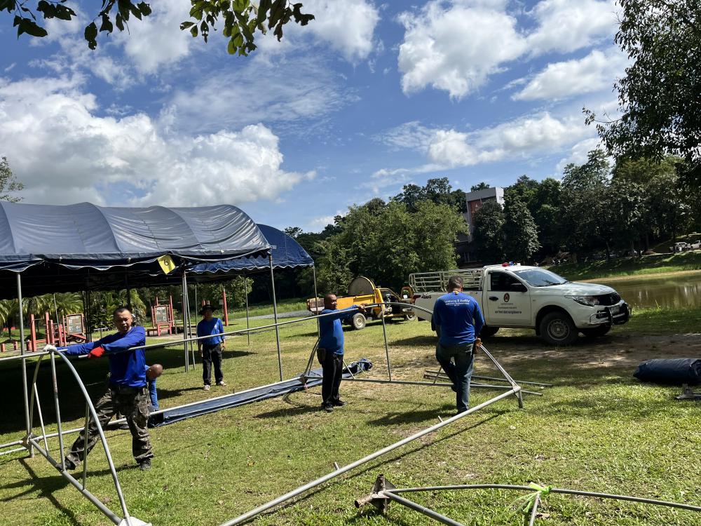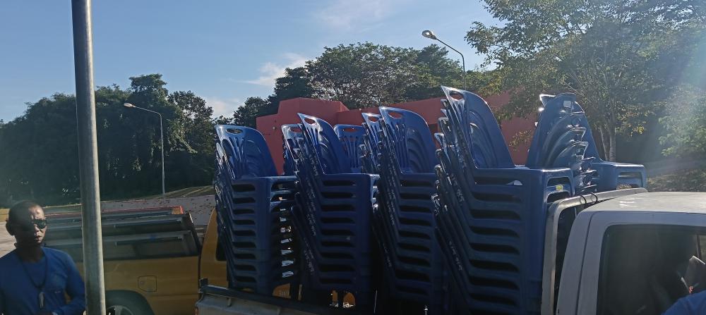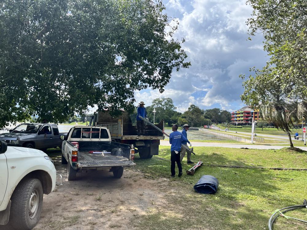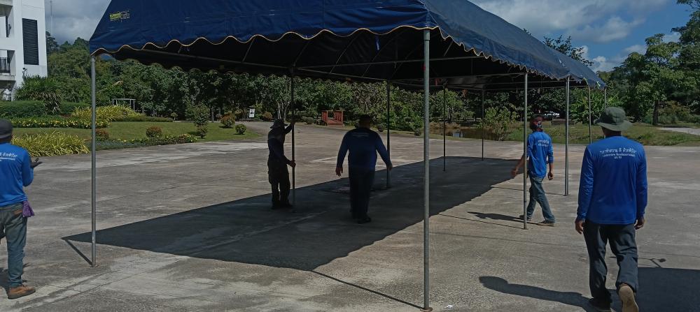 กองบริหารกายภาพฯ เก็บของต่างๆหลังเสร็จสิ้นงานซ้อมใหญ่พระราชทานปริญญาบัตร