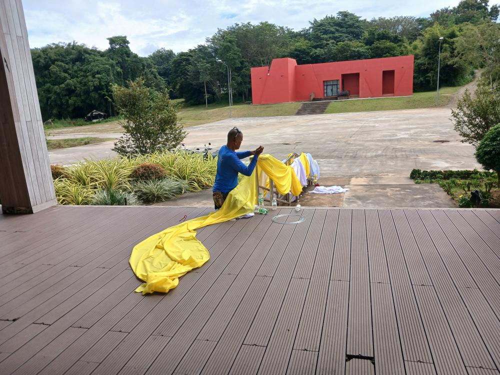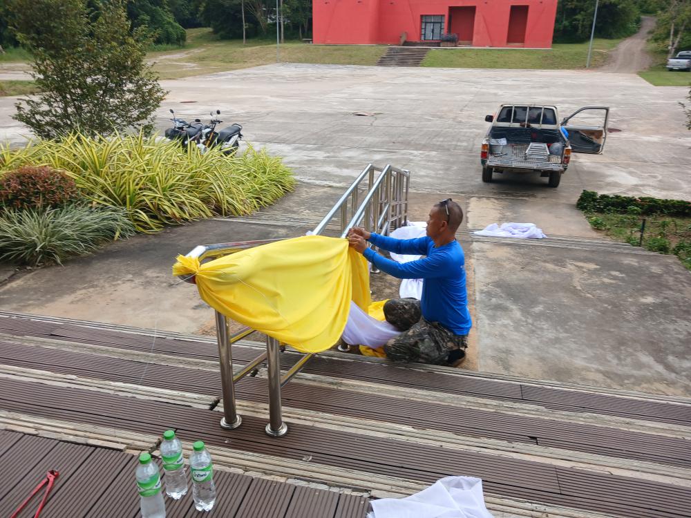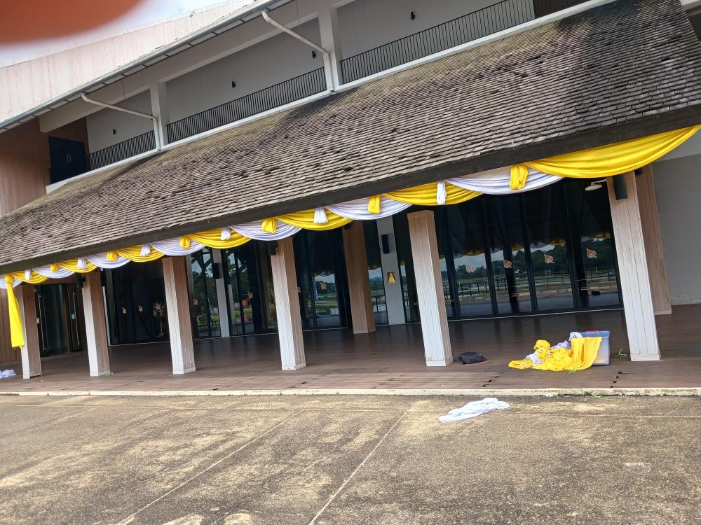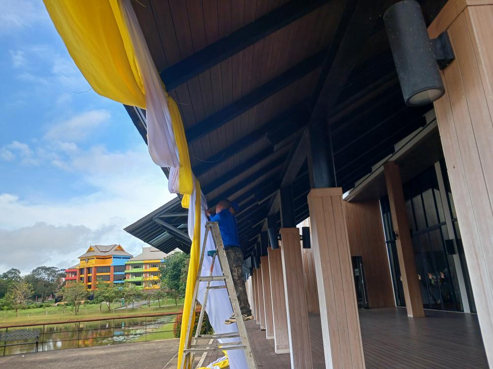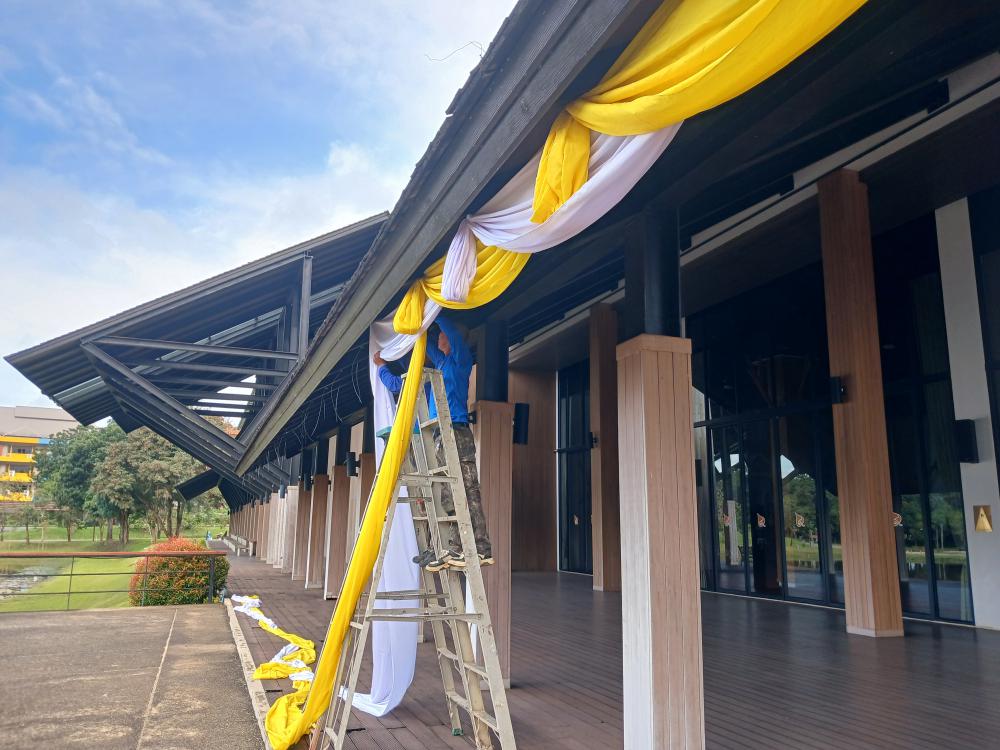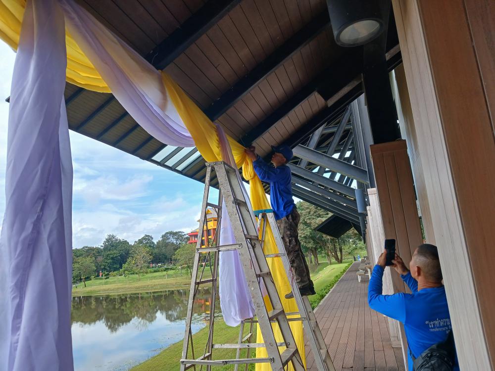 มัดผ้าตกแต่งสถานที่หอ ปรัชญา ร.๙