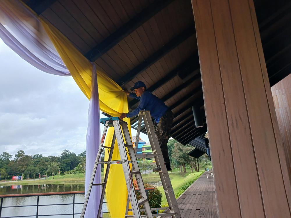 มัดผ้าตกแต่งสถานที่ หอปรัชญาร .๙