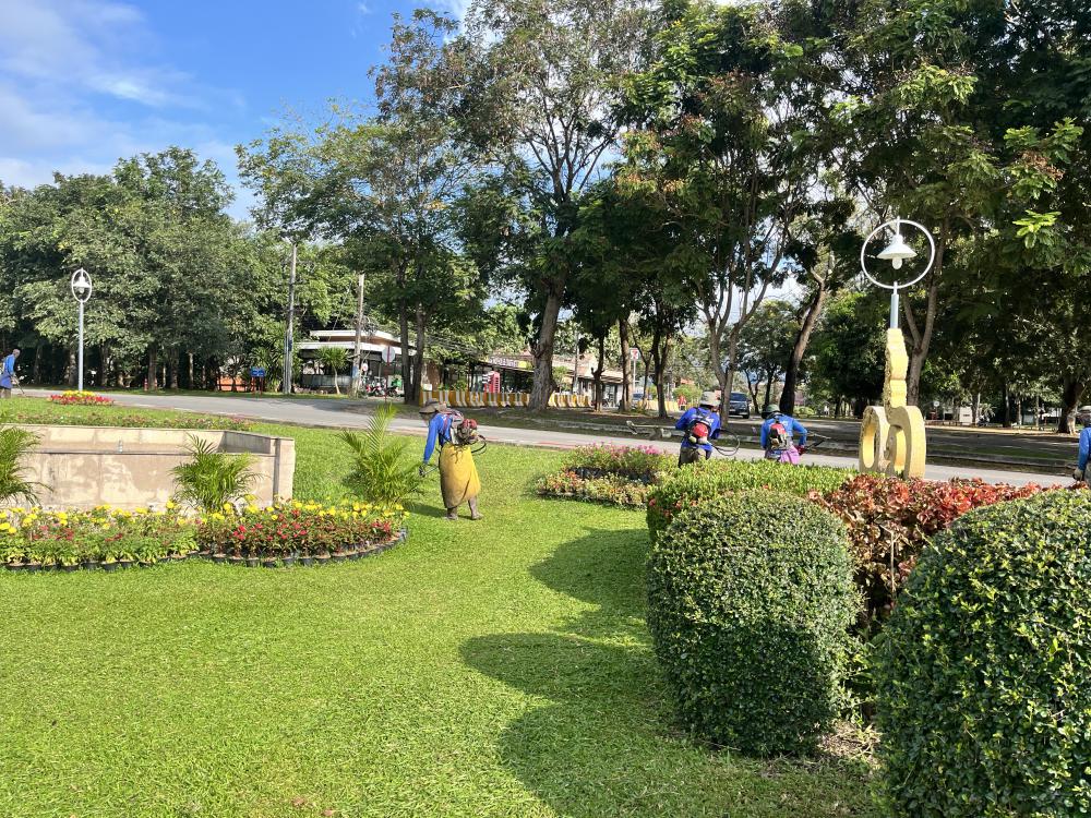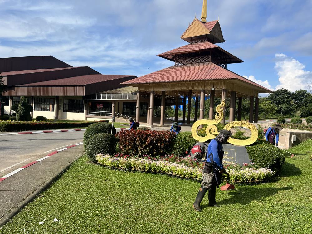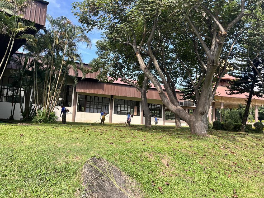 ตัดหญ้ารอบหอประชุมใหญ่