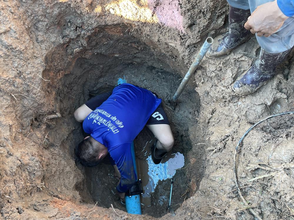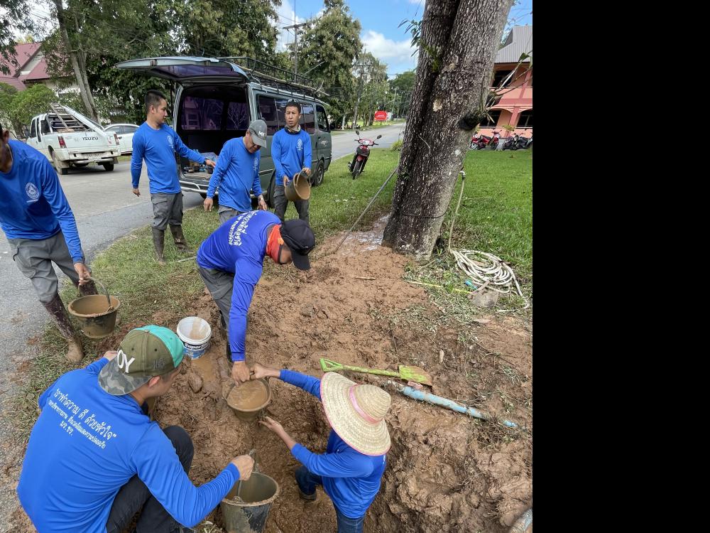 กองบริหารกายภาพฯ ซ่อมท่อเมนน้ำแตกสามแยกหน้าคณะสาธารณสุขศาสตร์