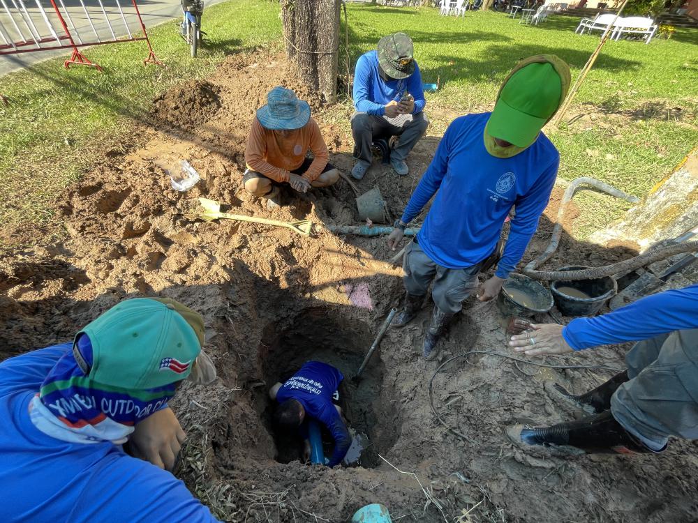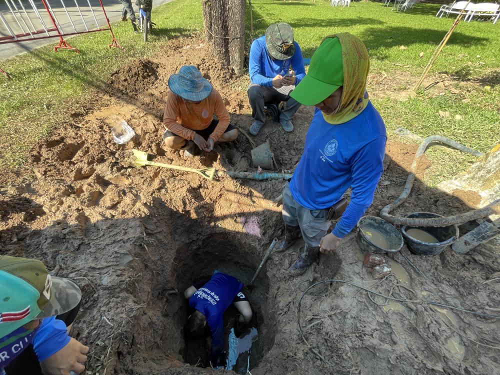 ซ่อมท่อน้ำแตกสามแยกหน้าอาคารคณะสาธรณสุขศาสตร์