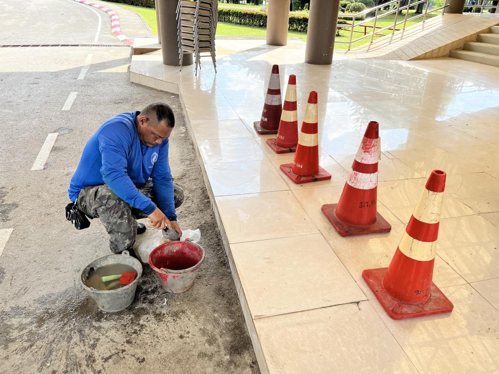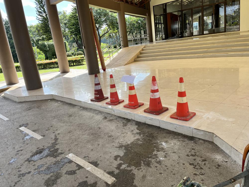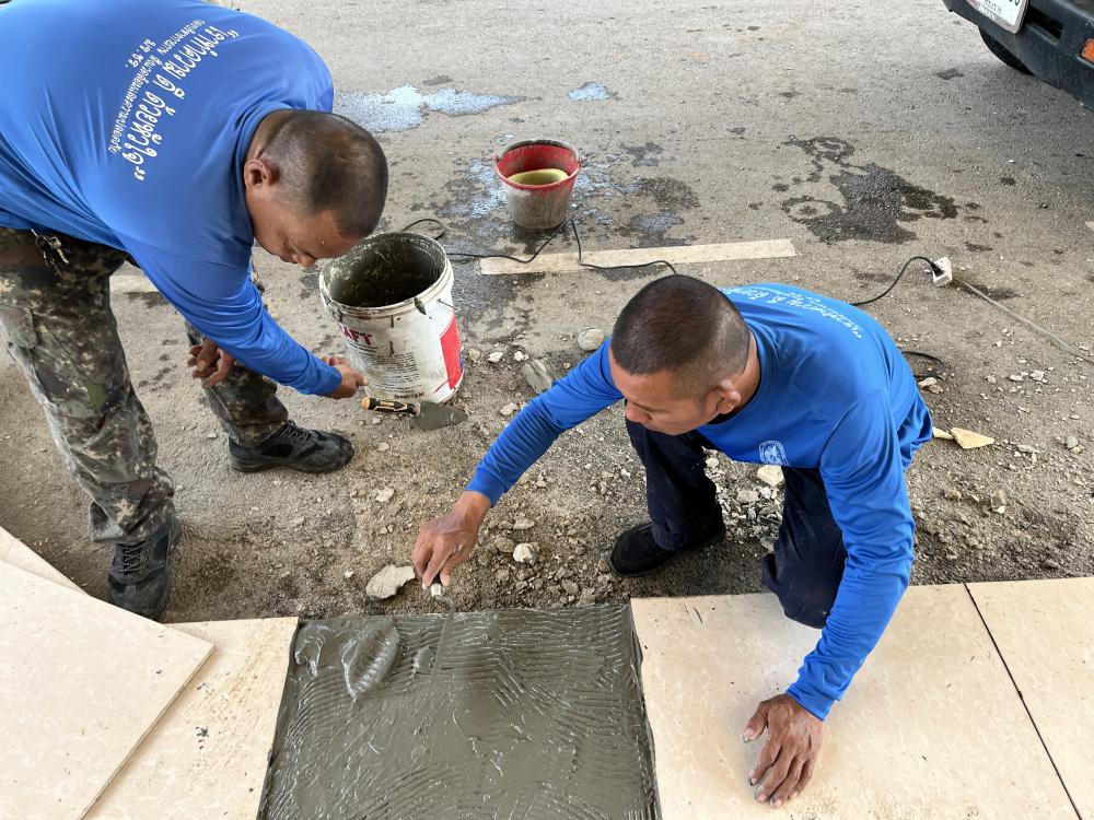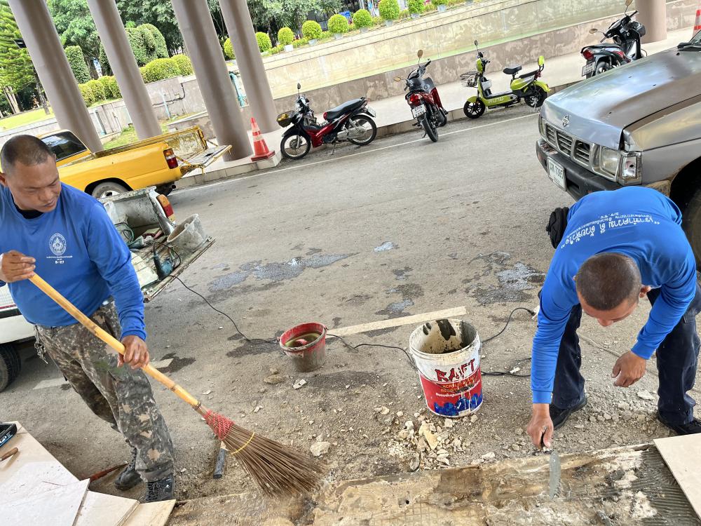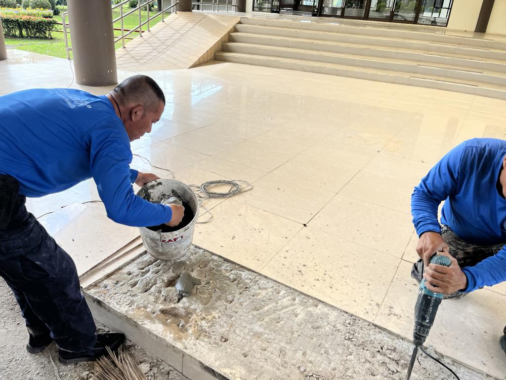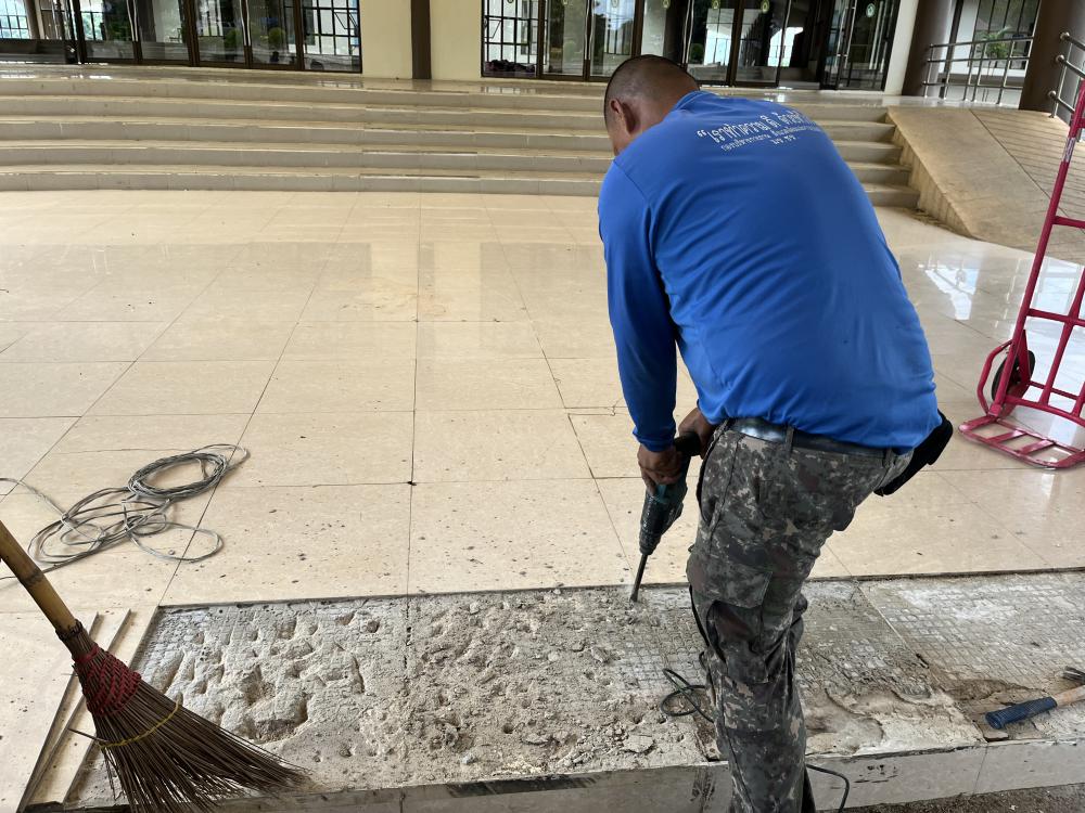 ซ่อมแซมกระเบื้องหน้าหอประชุมใหญ่