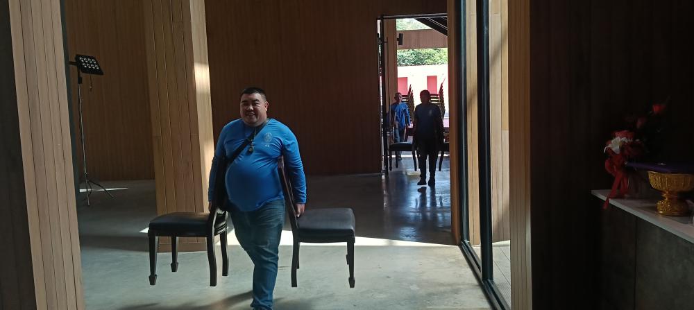เก็บของต่างๆหลังเสร็จสิ้นงานทำบุญบำเพ็ญกุศล ร 9
