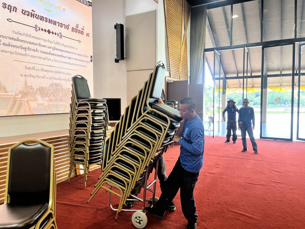 หอปรัชญารัชกาลที่ ๙ เก็บของต่างๆ หลังเสร็จสิ้นงาน ทำบุญบำเพ็ญกุศล ร 9