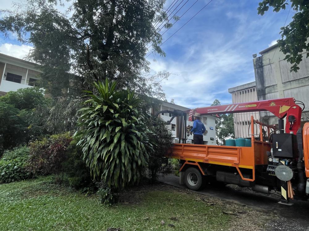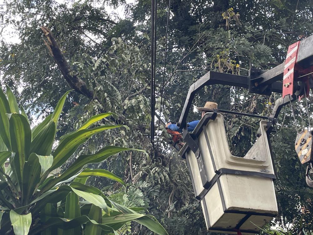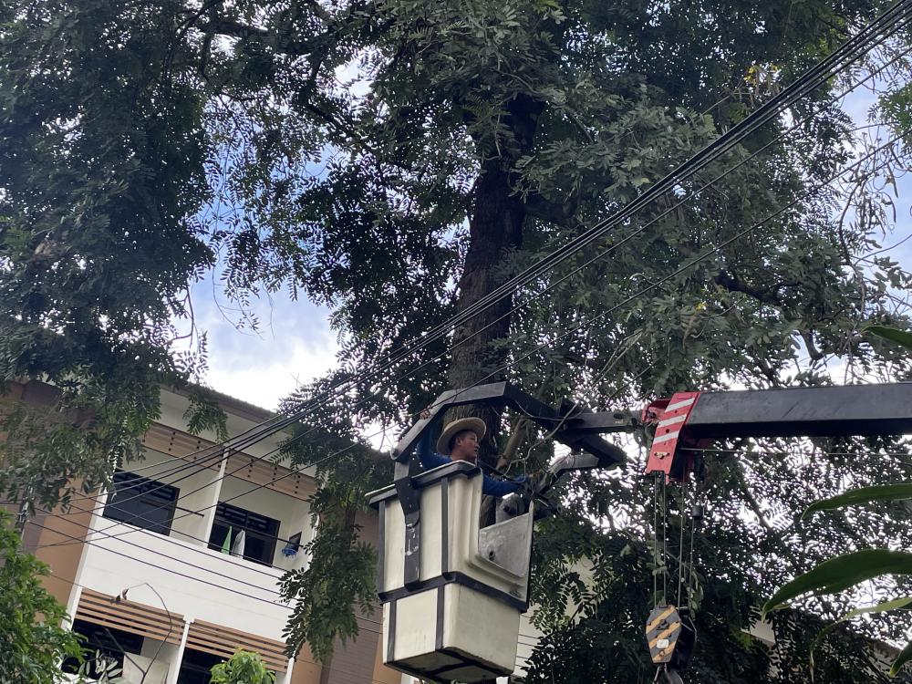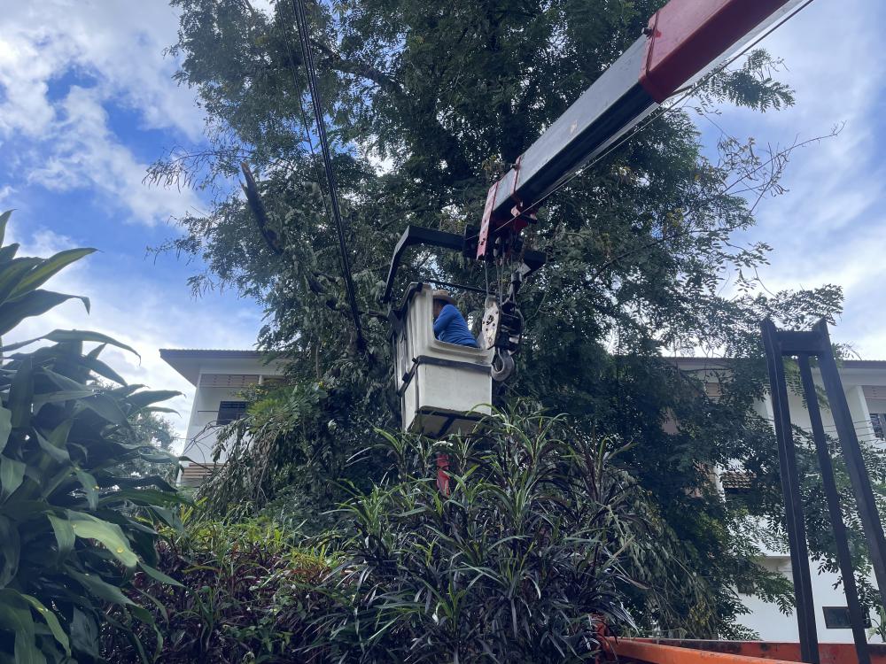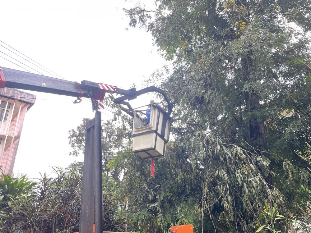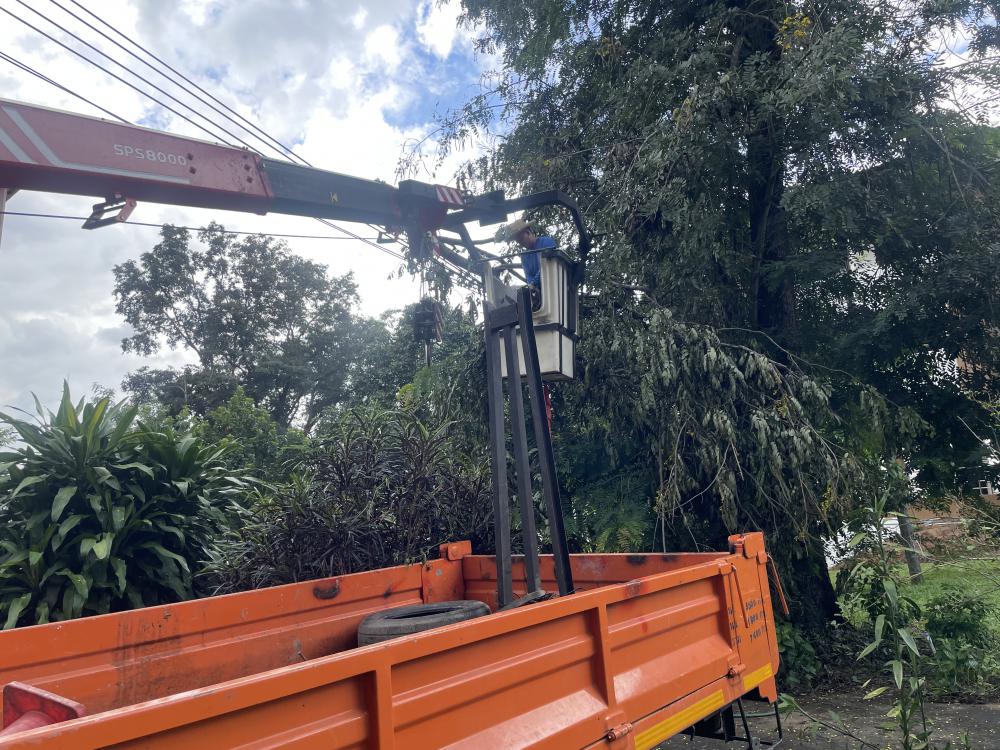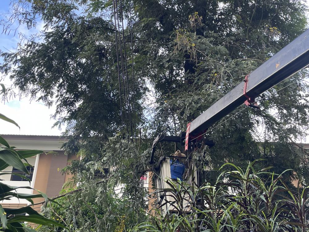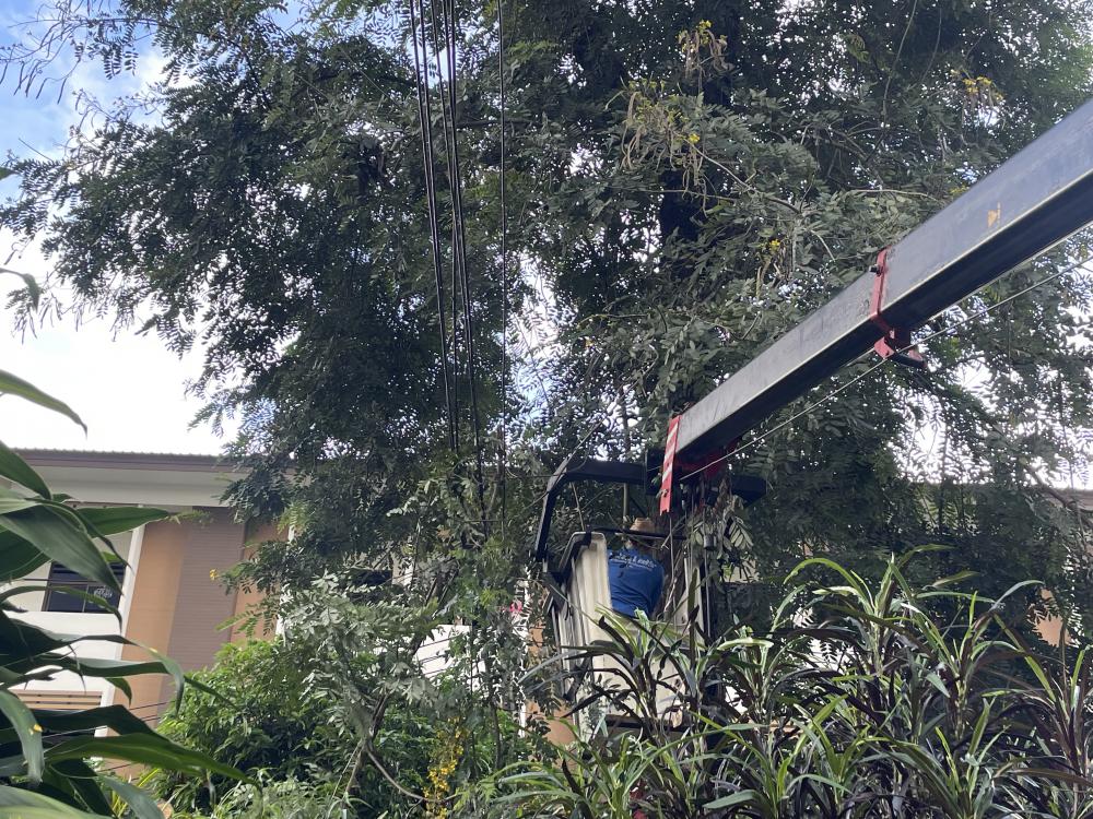 ตัดกิ่งไม้หักพาดสายไฟหอพัก1 และแนวสายไฟแรงต่ำ