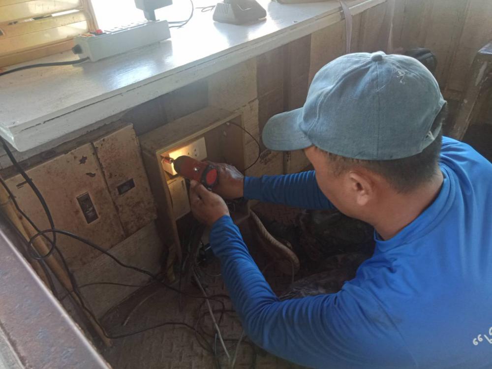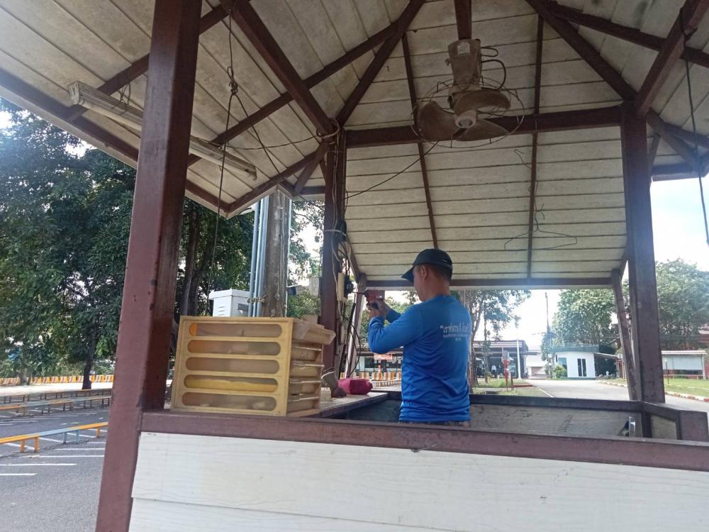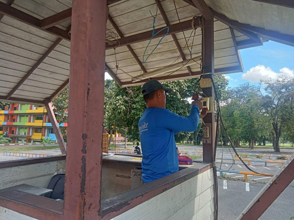กองบริหารกายภาพฯ รื้อถอดสายไฟภายในป้อมยาม ประตู 1,2,3,4,อาคารเรียนรวม 1 และลานจอดรถคณะ วจ.