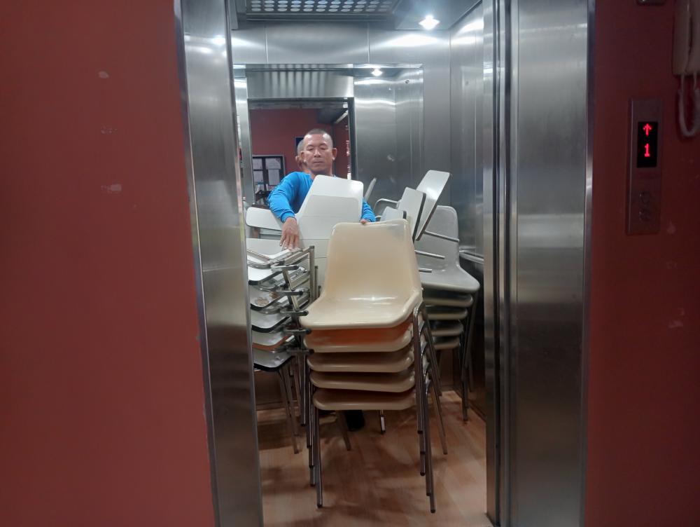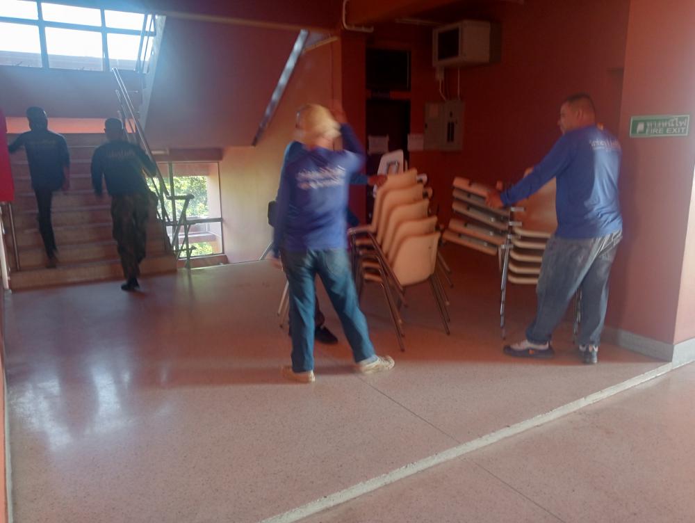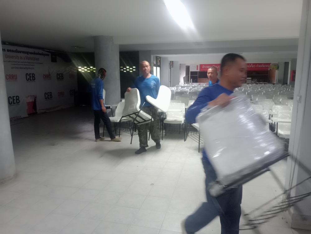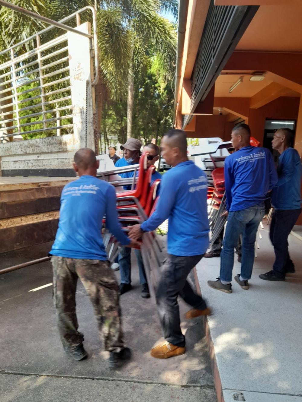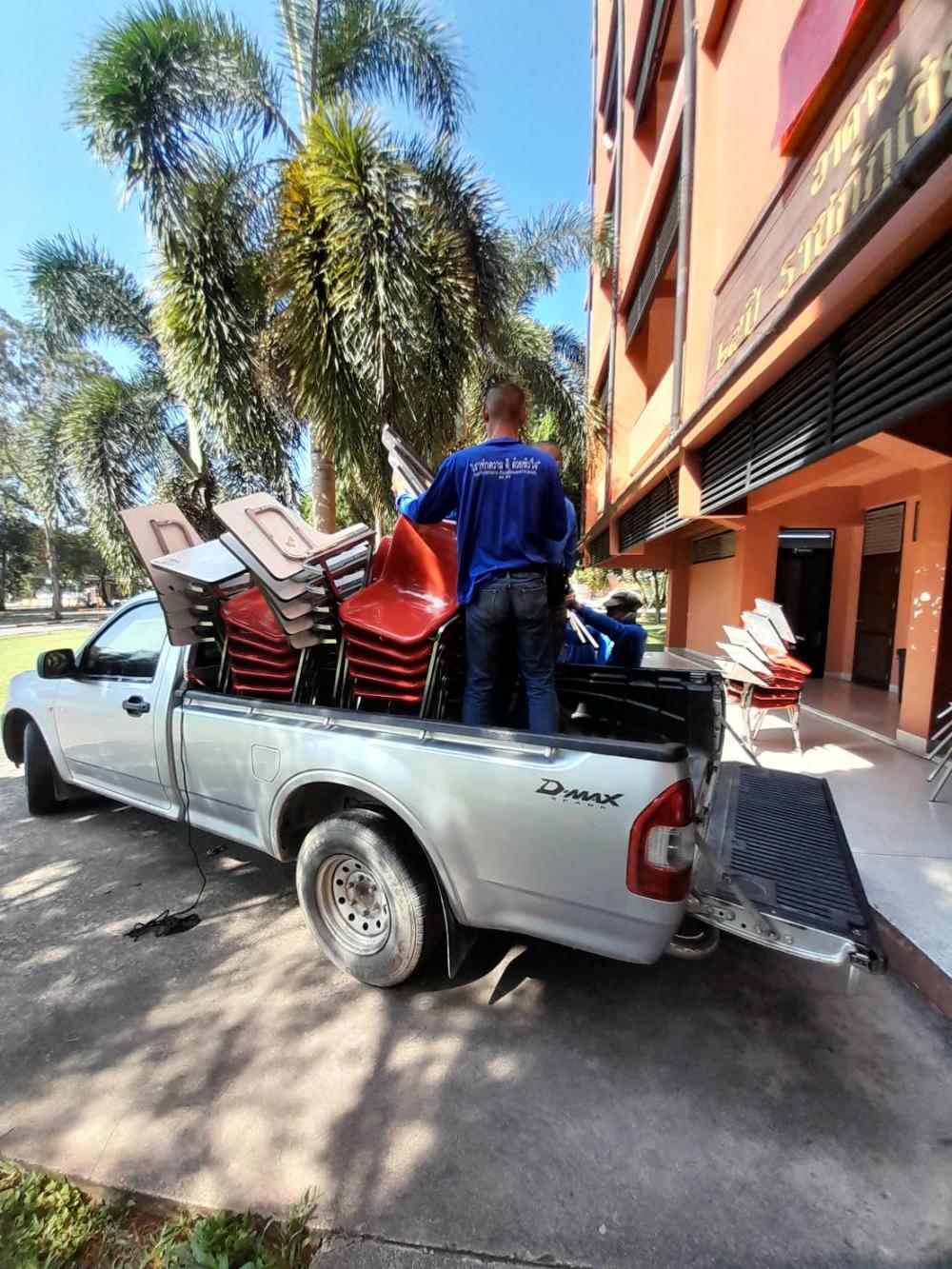 กองบริหารกายภาพฯ ขนเก้าอี้ตึก 8 ชั้น