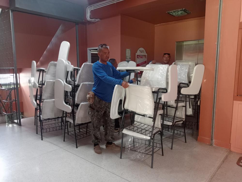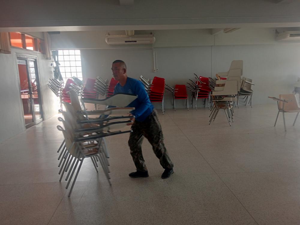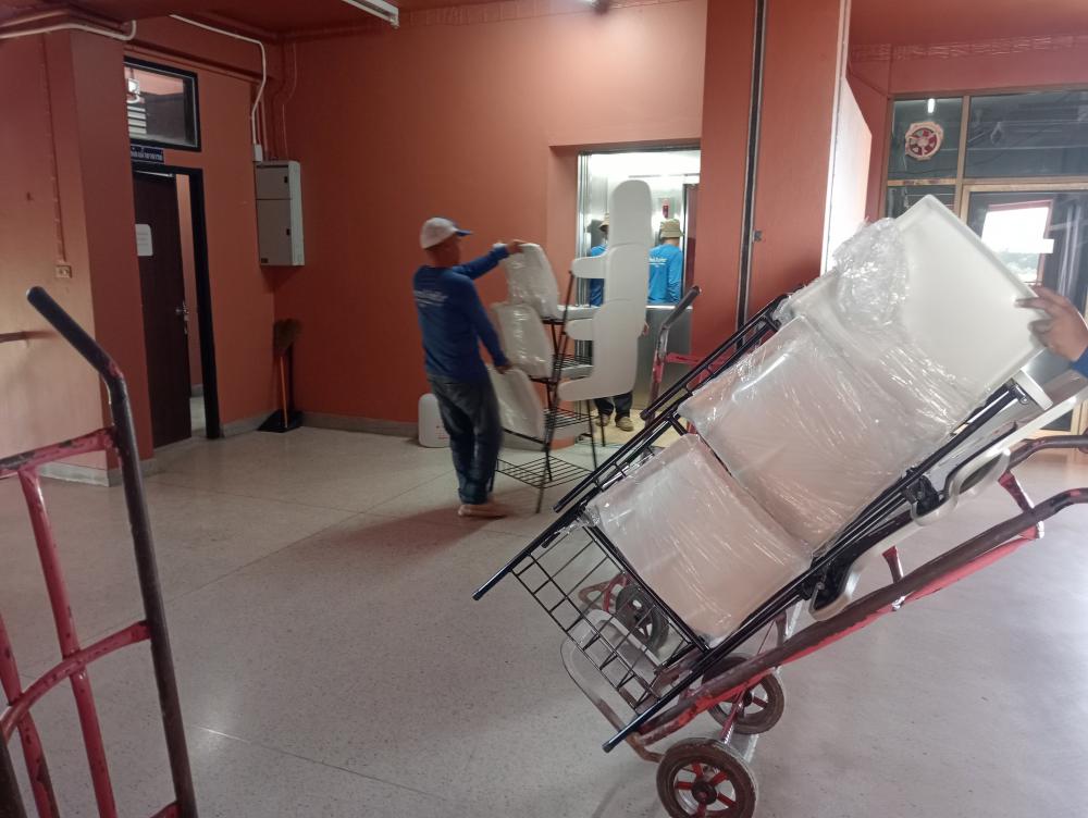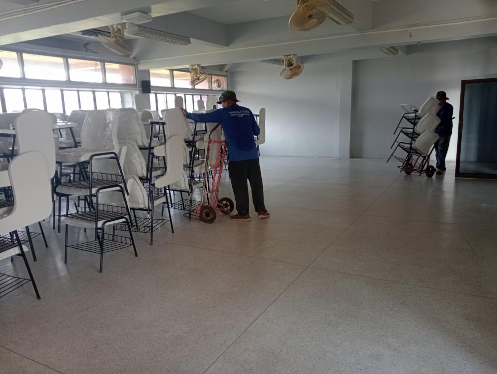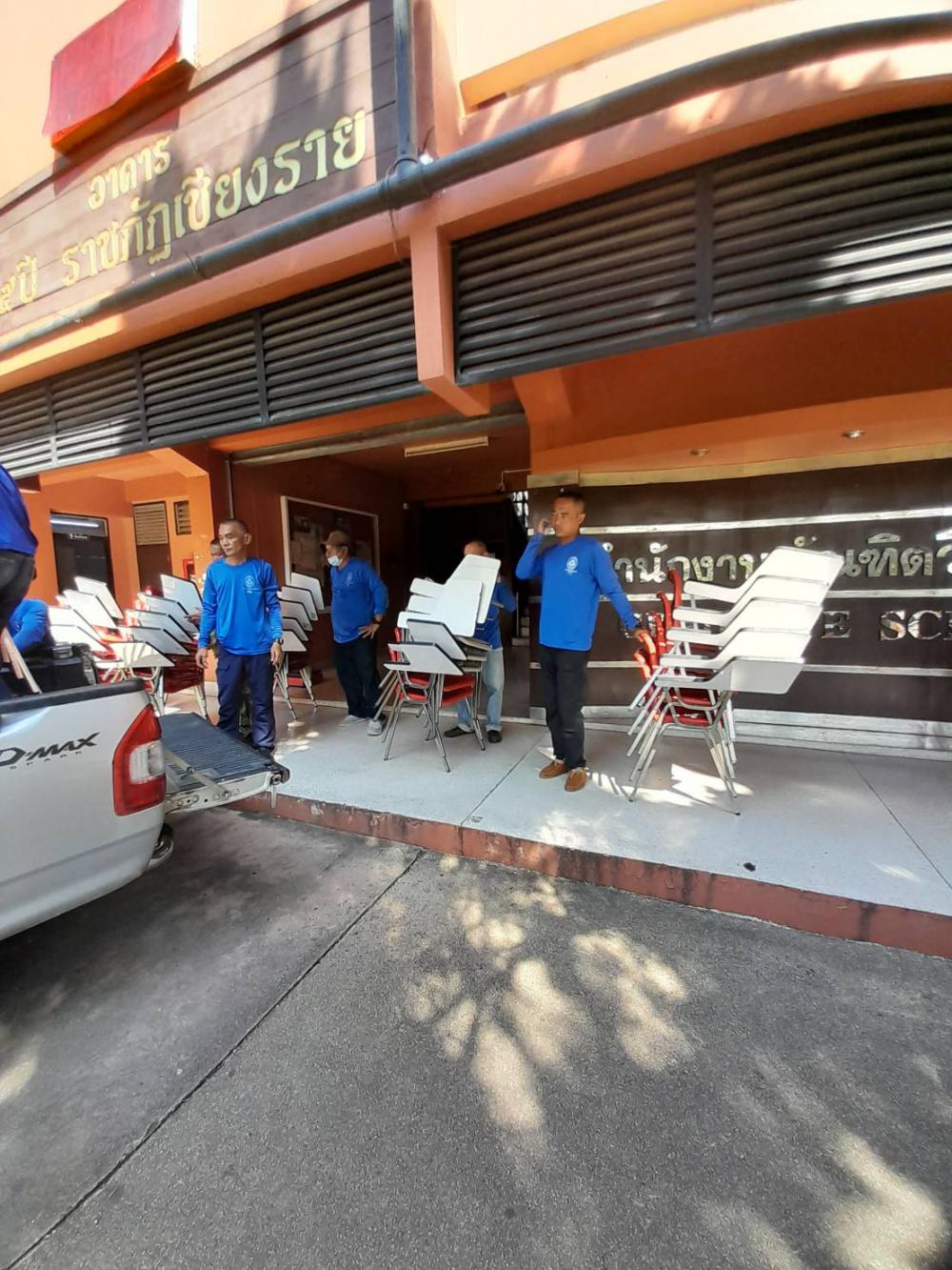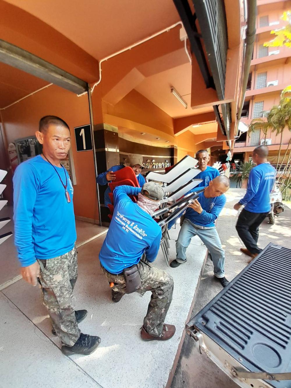 กองบริหารกายภาพฯ ขนเก้าอี้ตึก 8 ชั้น