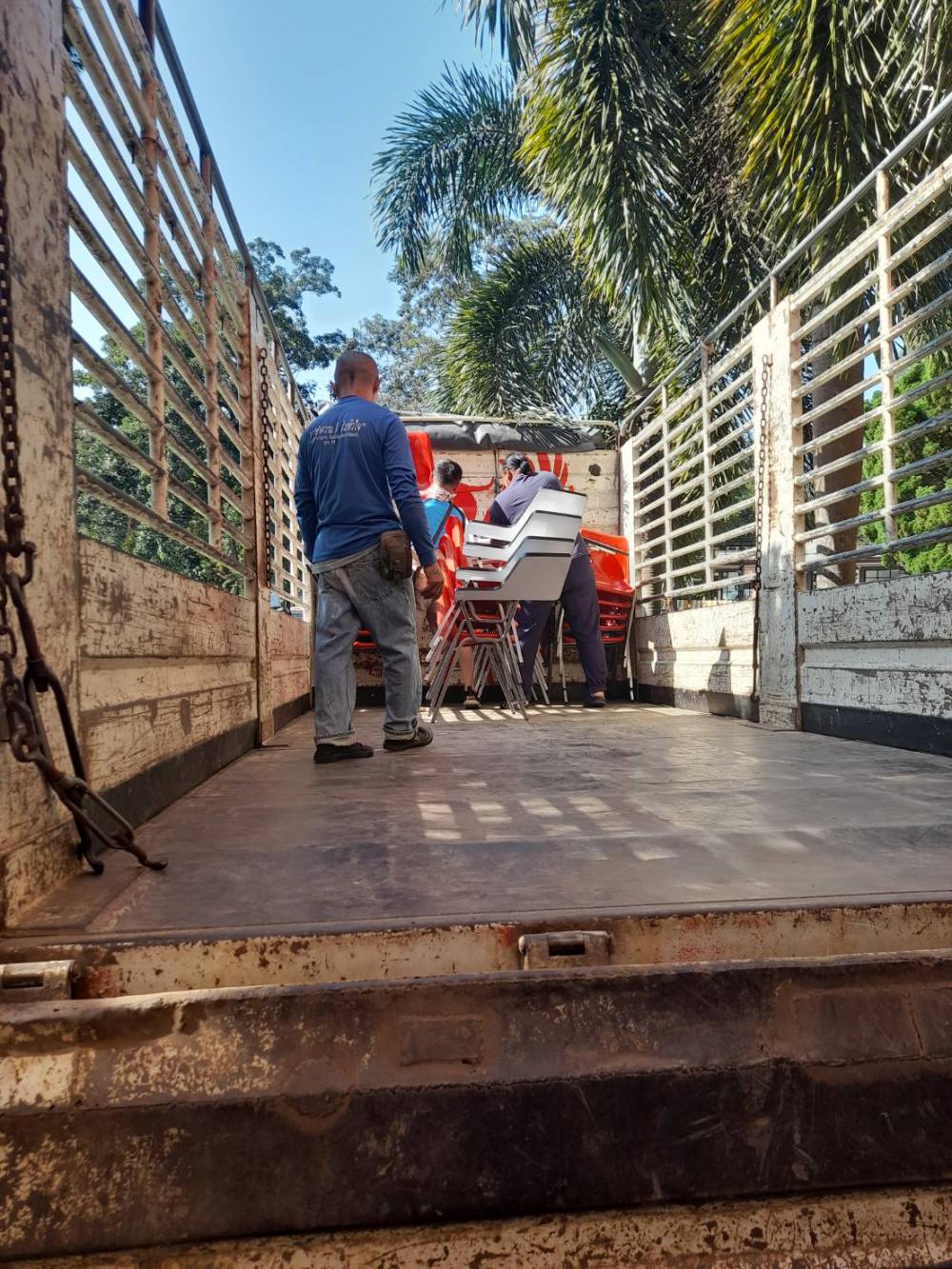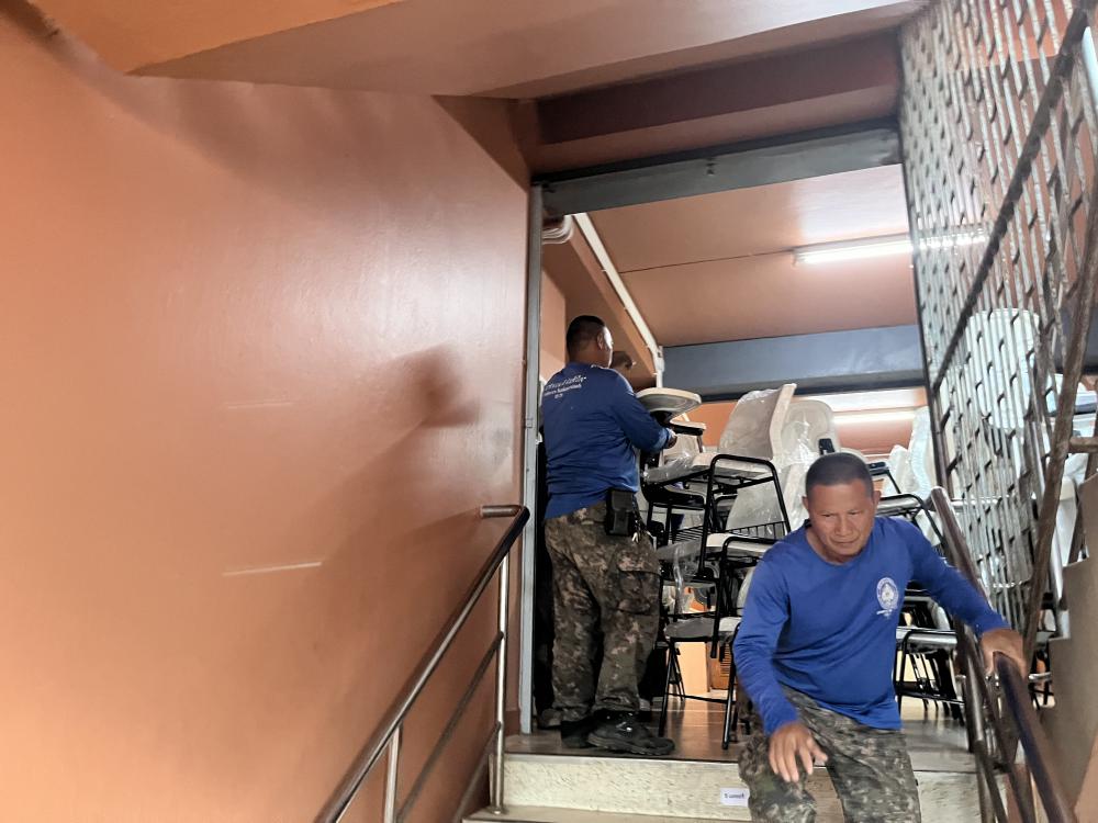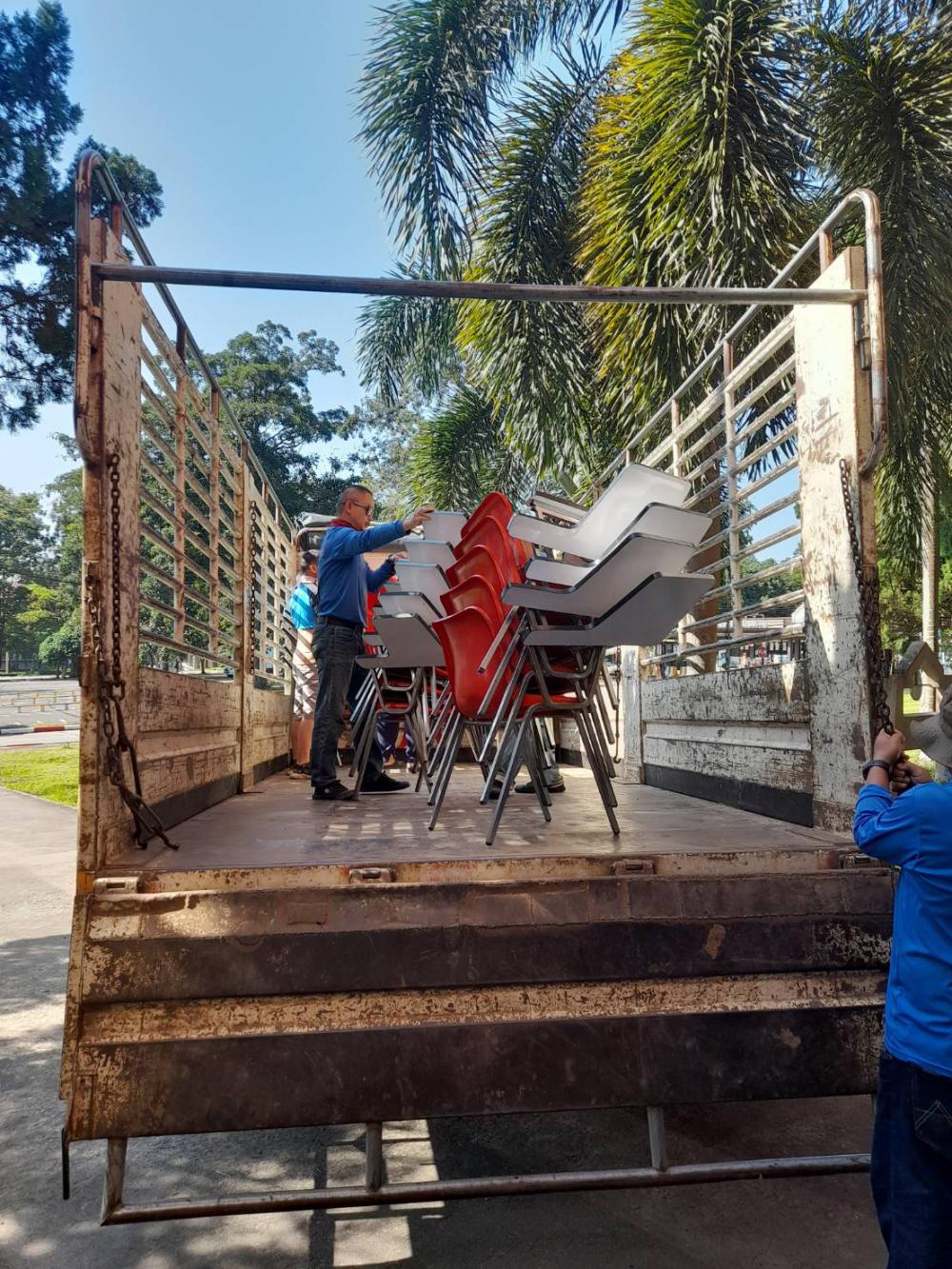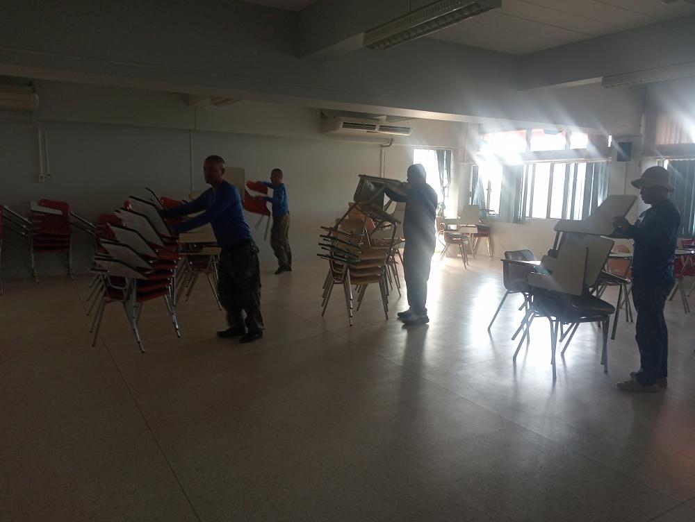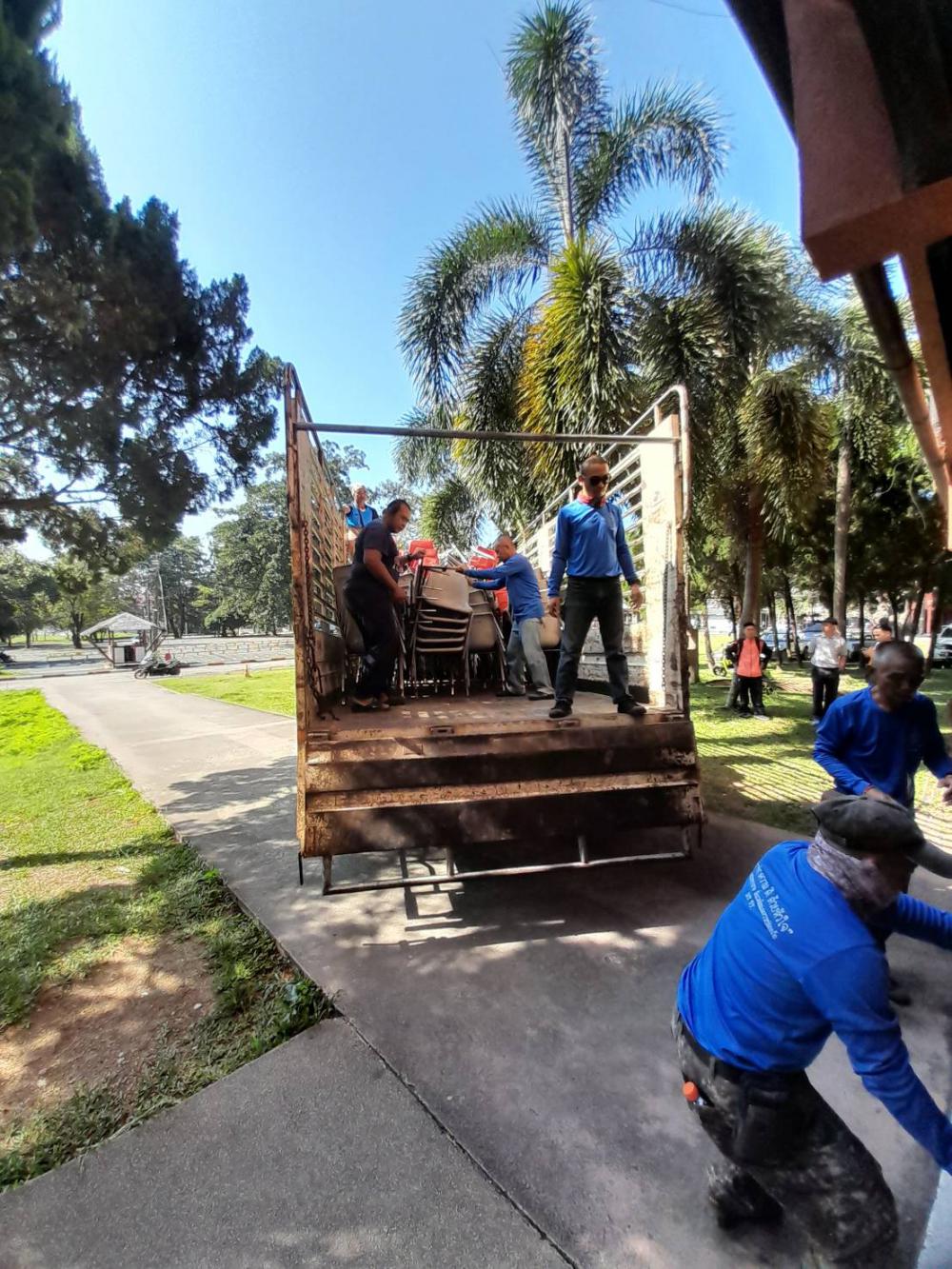 กองบริหารกายภาพฯ ขนเก้าอี้ตึก 8 ชั้น