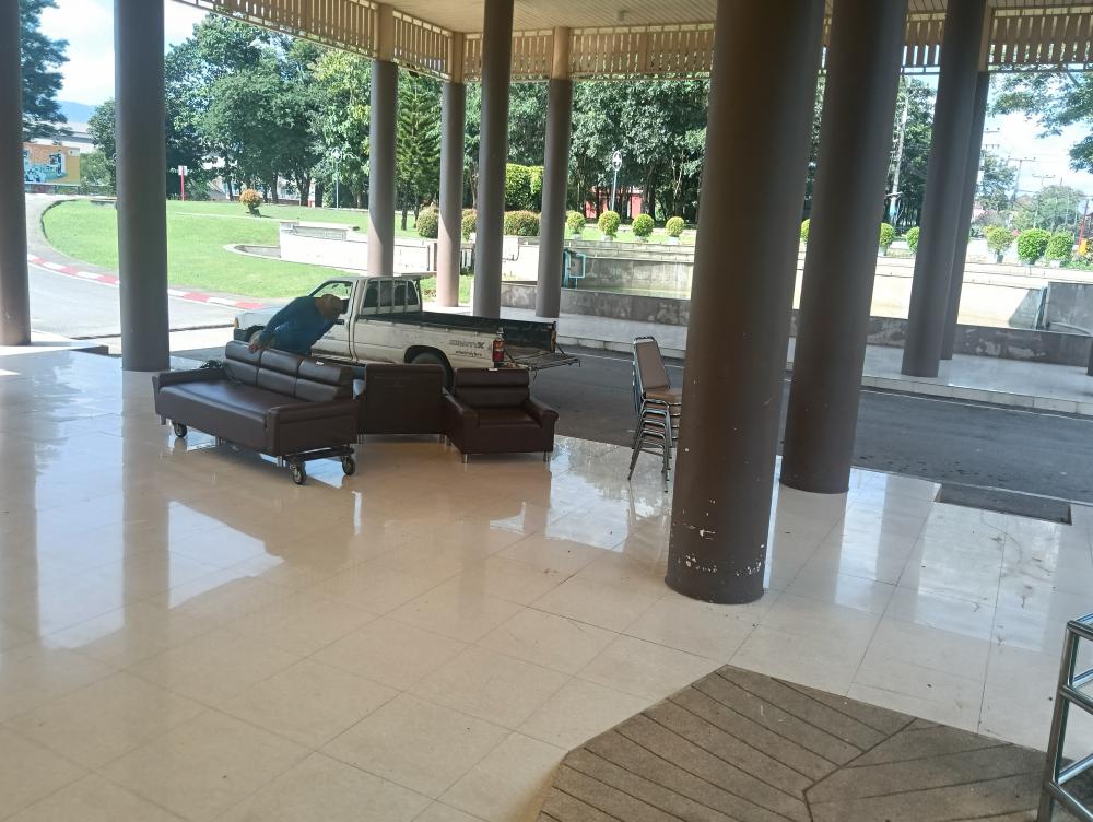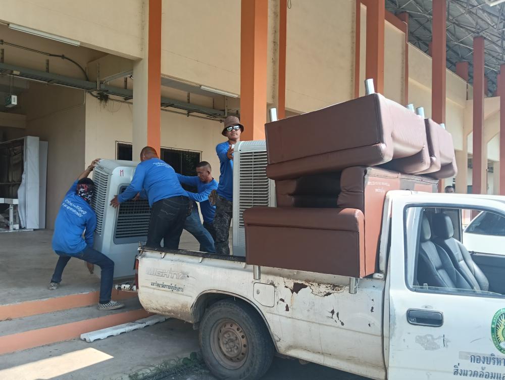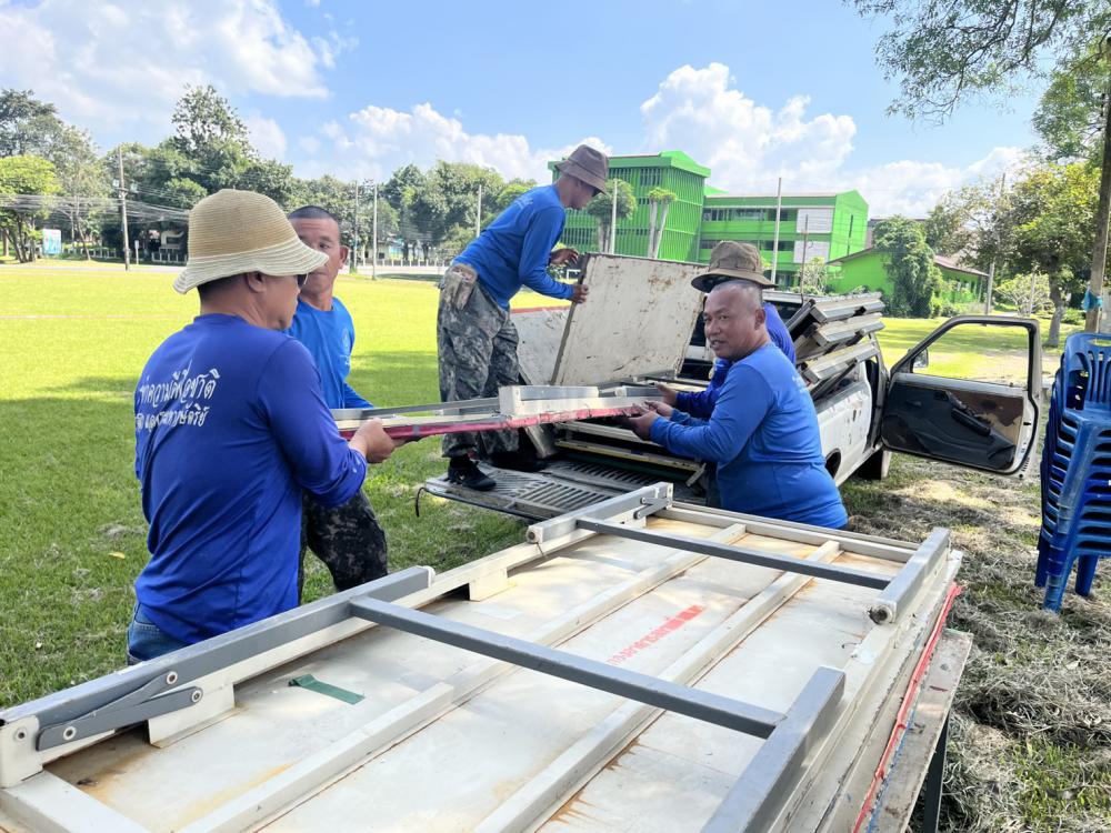 ขนโต๊ะ เก้าอี้และอุปกรณ์ต่างๆไปสนามกีฬา