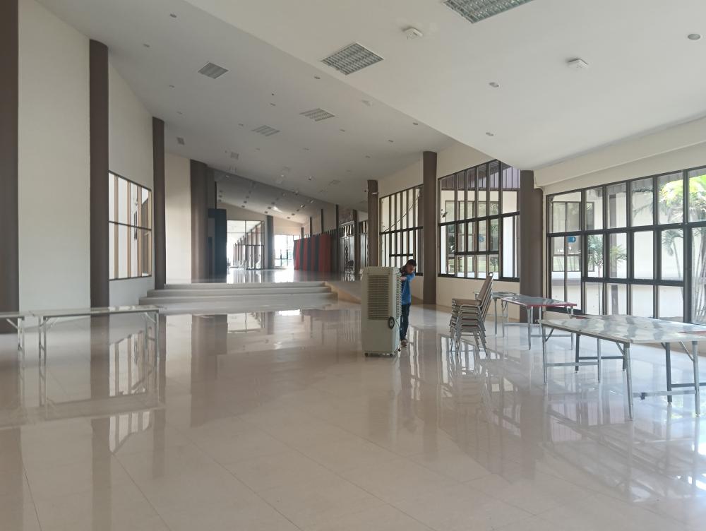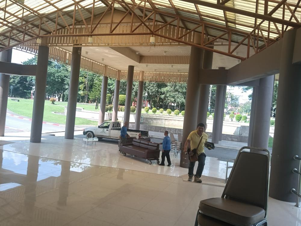 ขนโต๊ะ เก้าอี้ และอุปกรณ์ต่างๆ ไปสนาม กีฬา