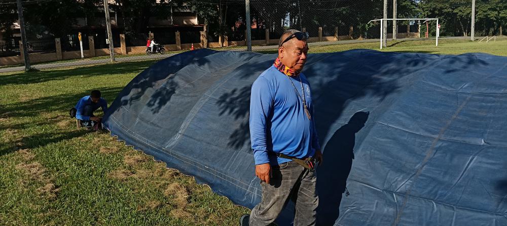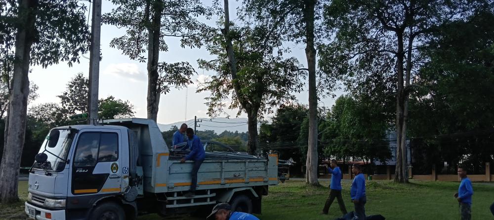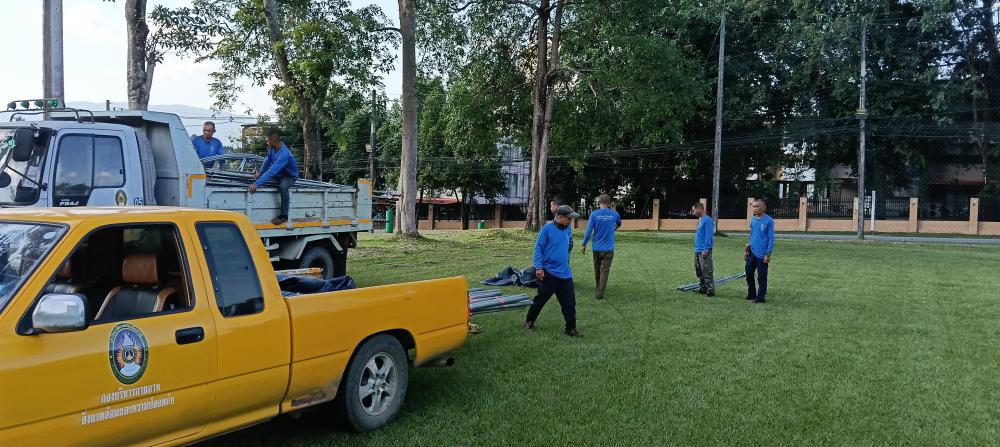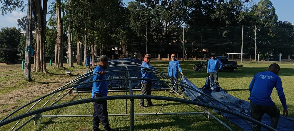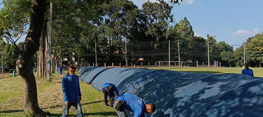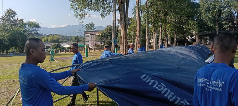 กองบริหารกายภาพฯ กางเต็นท์สนามกีฬารวมใจ