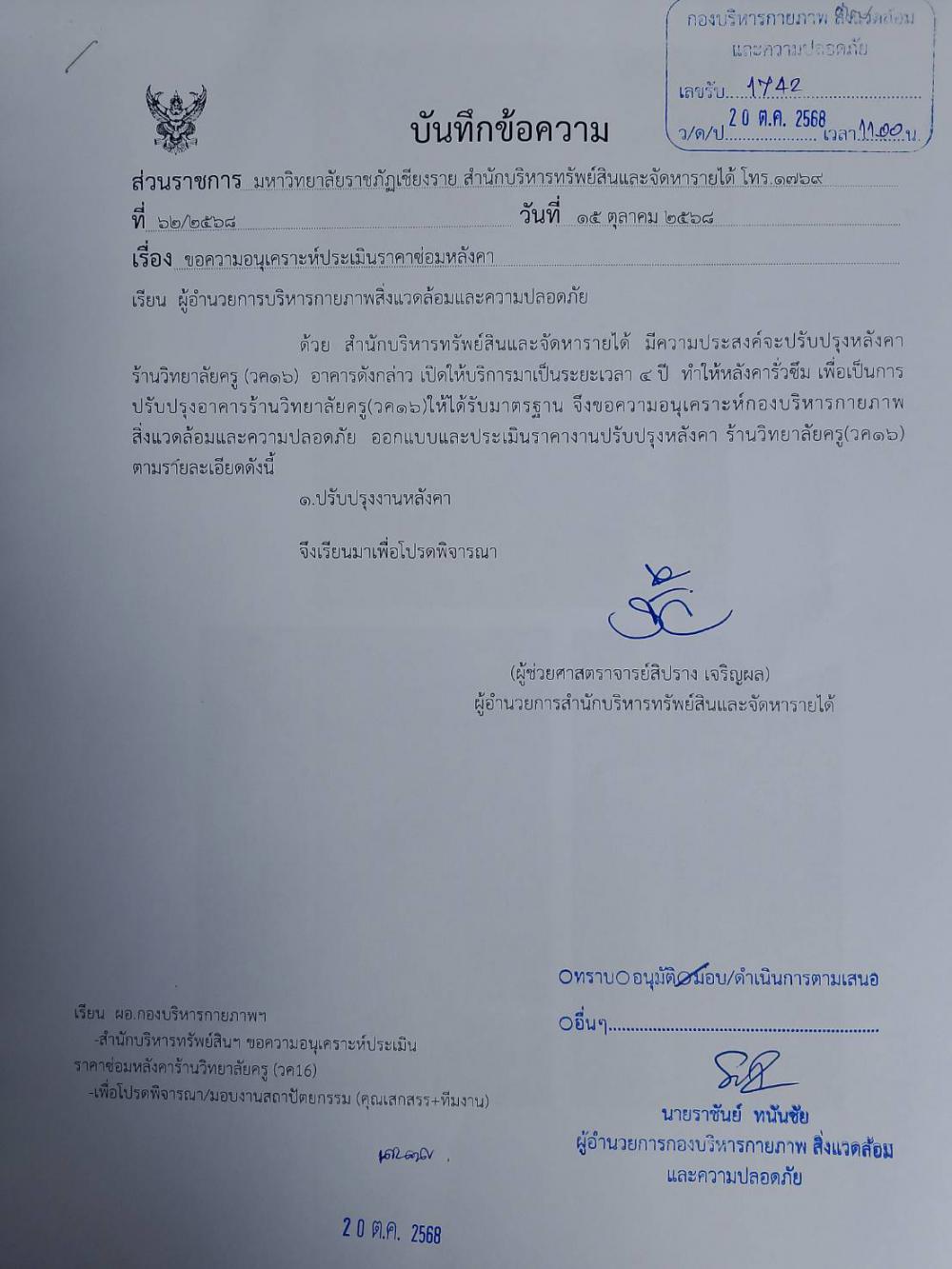 21 ตุลาคม 2568 16:37:23 นางสาวสินีนาฎ ทนันชัย อัพเดทเป็นรอดำเนินการ