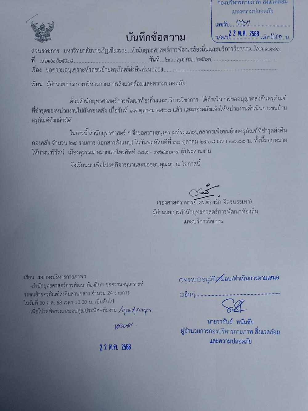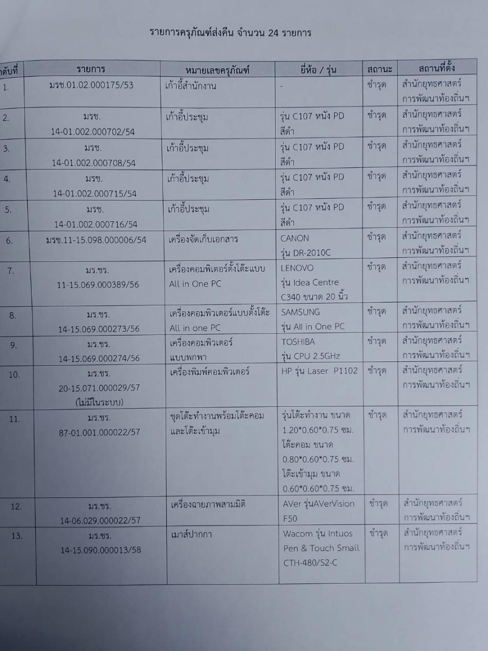 สำนักยุทธศาสตร์ฯ ขนย้ายครุภัณฑ์เก่าของสำนักยุทธศาสตร์ฯ ส่งคืนกองคลัง งานพัสดุ จำนวน 24 รายการ