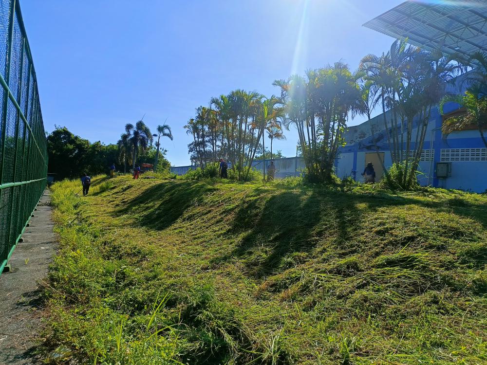 กองบริหารกายภาพฯ ตัดหญ้าบริเวณโซนสนามกีฬา