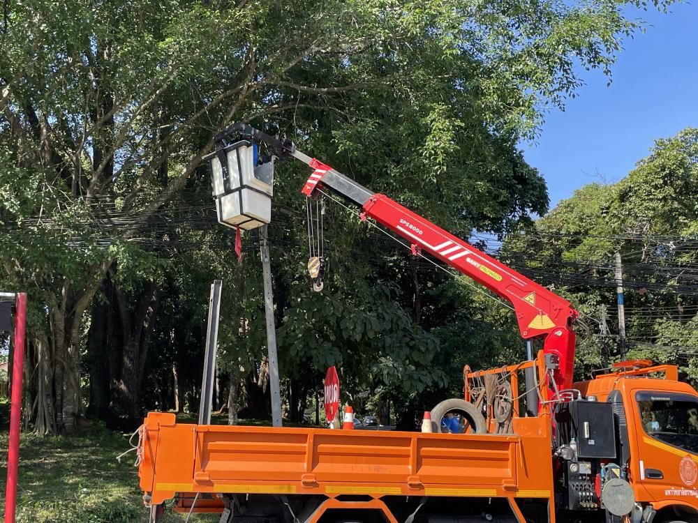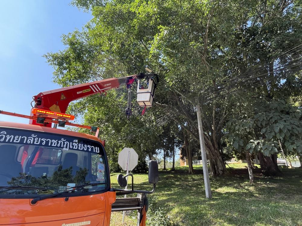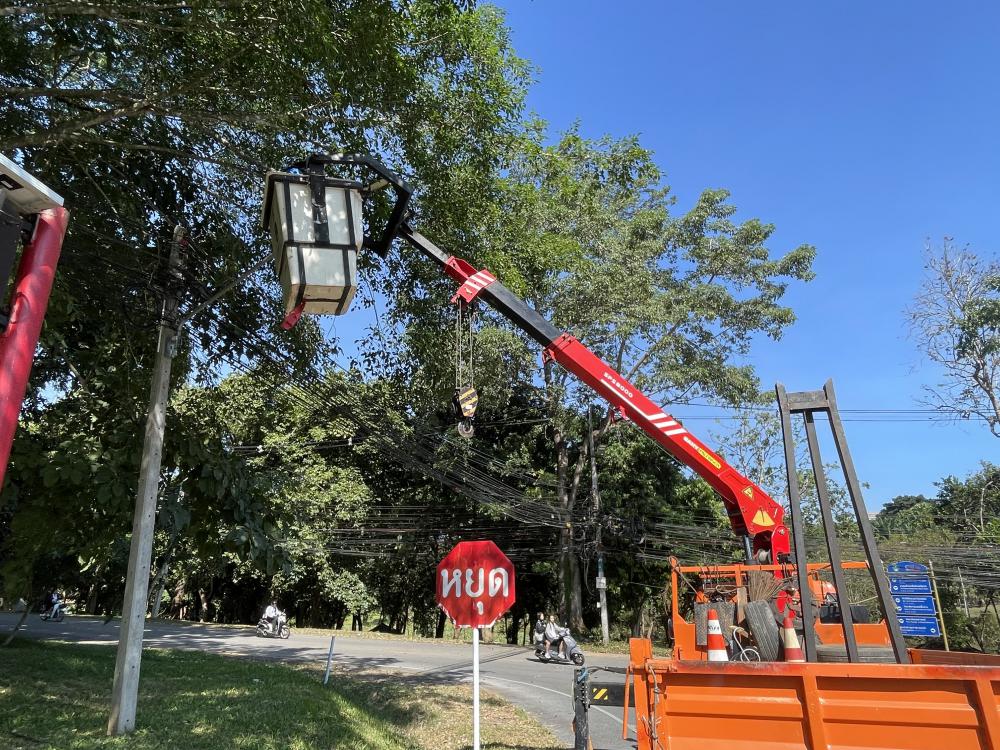 กองบริหารกายภาพฯ ตรวจเช็คซ่อมเปลี่ยนไฟกิ่งถนนเส้นวงเวียนหน้าคณะมนุษยศาสตร์จนถึงสามแยกสำนักยุธศาสตร์