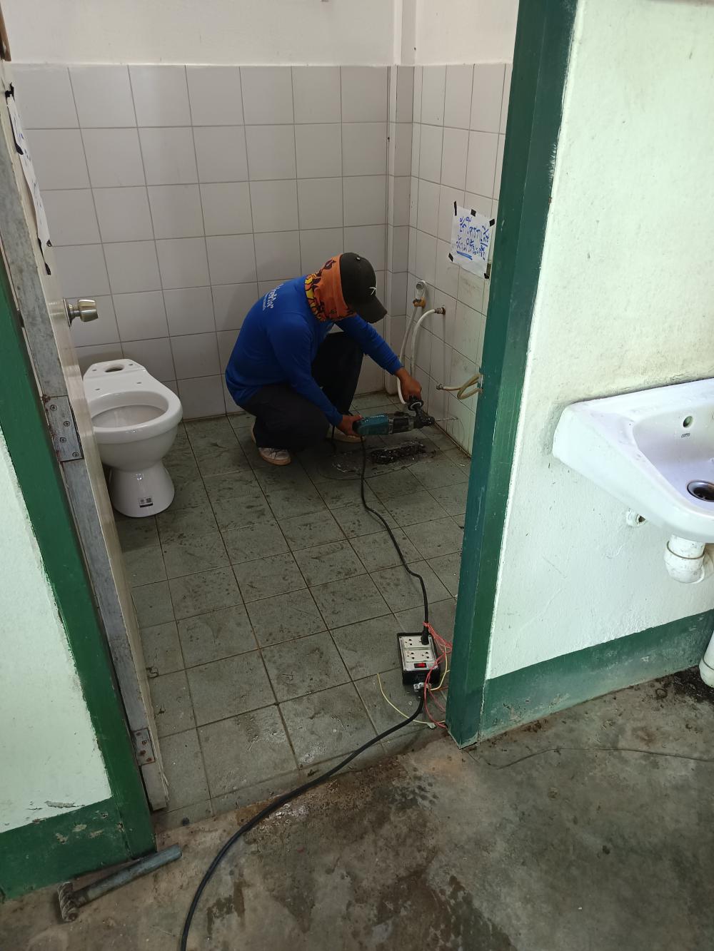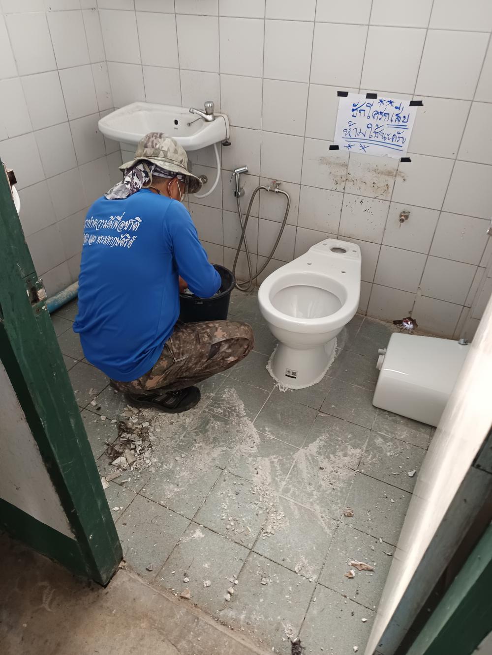 ซ่อมเปลี่ยนชักโครกวางท่อใหม่สนามเทนนิส