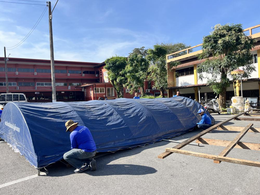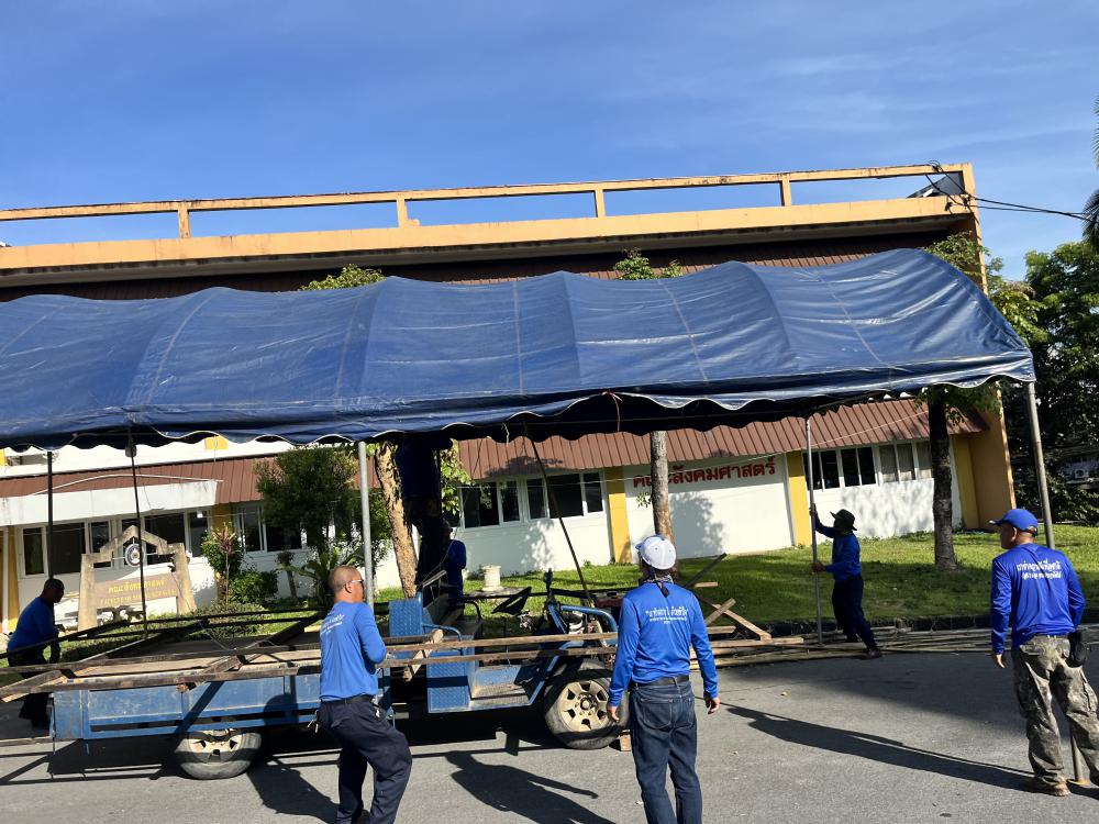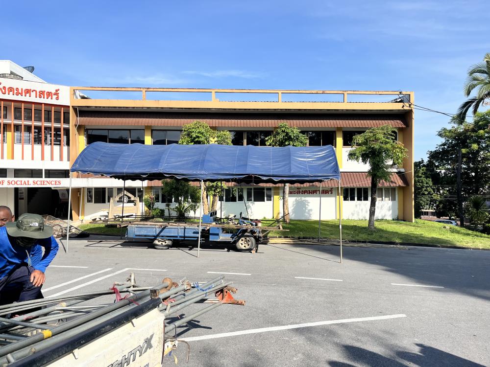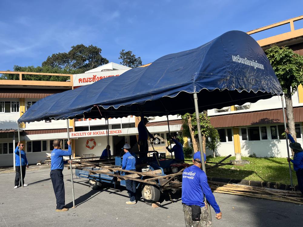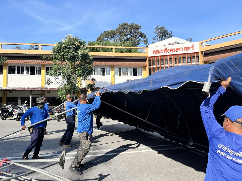 กองบริหารกายภาพฯ กางเต็นท์ ตึกคณะสังคม