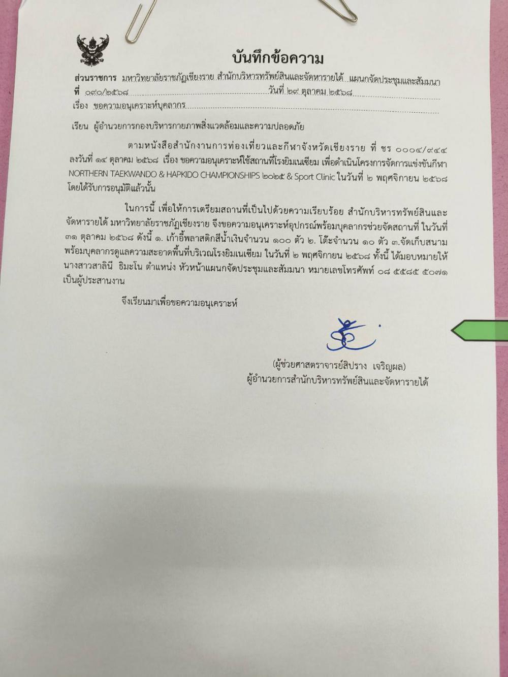 สำนักบริหารทรัพย์สินฯ จัดสถานที่ภายในโรงยิมงานแข่งกีฬาเทควันโด