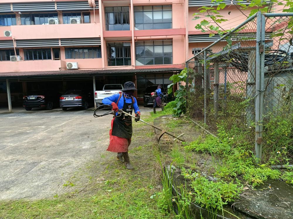 ตัดหญ้าหลังตึกคณะวิทยาศาสตร์และหอดูดาว