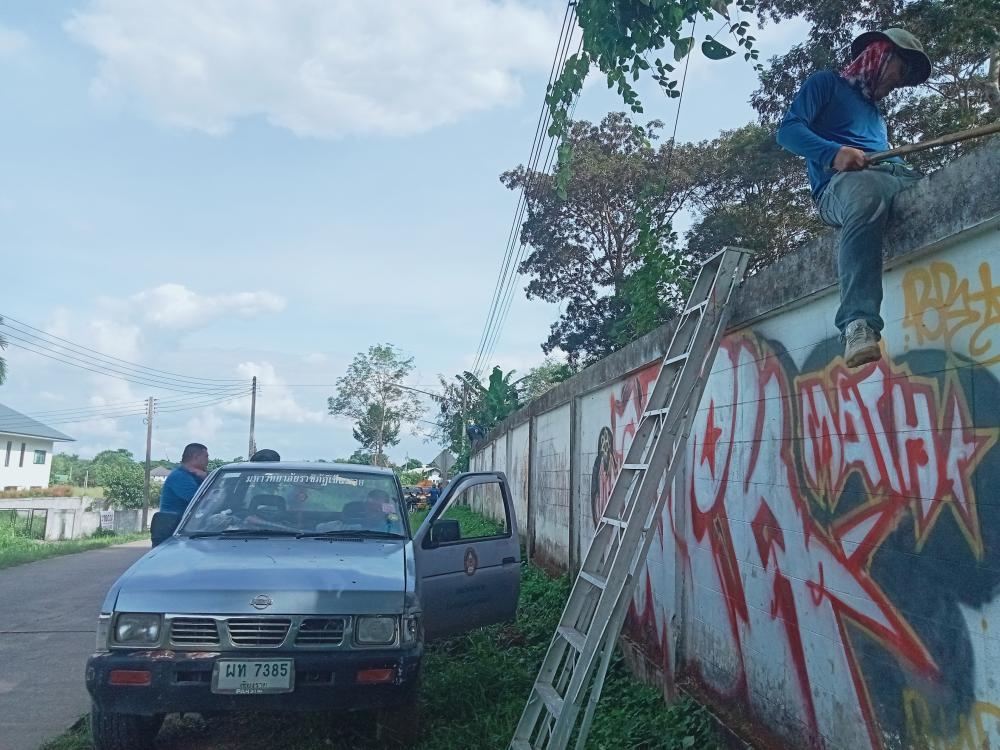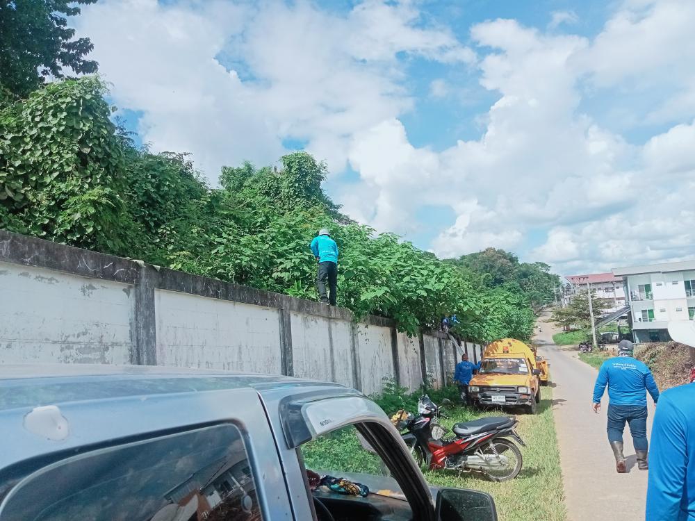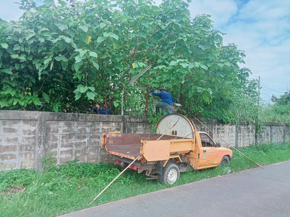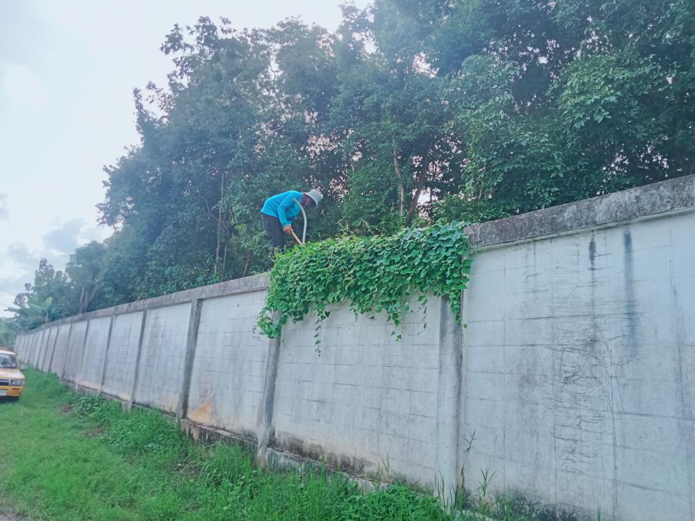 ตัดแต่งกิ่งไม้ บริเวณรอบรั้วด้านนอก ตั้งแต่ประตู1