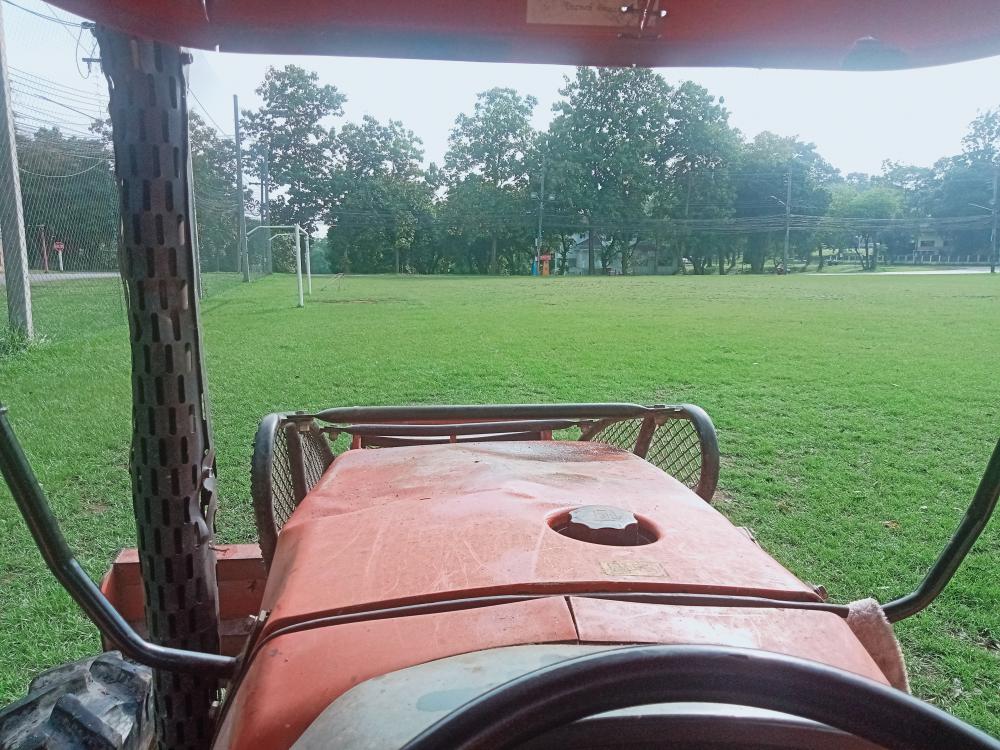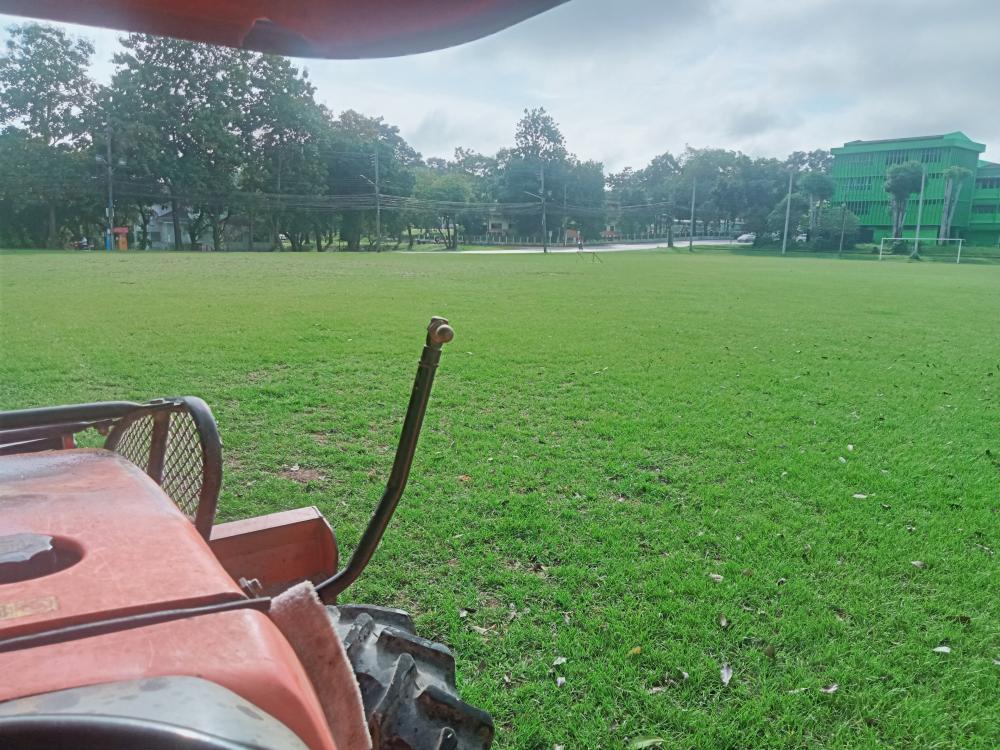 ขับแทรกเตอร์ตัดหญ้าสนาม กีฬารวมใจ