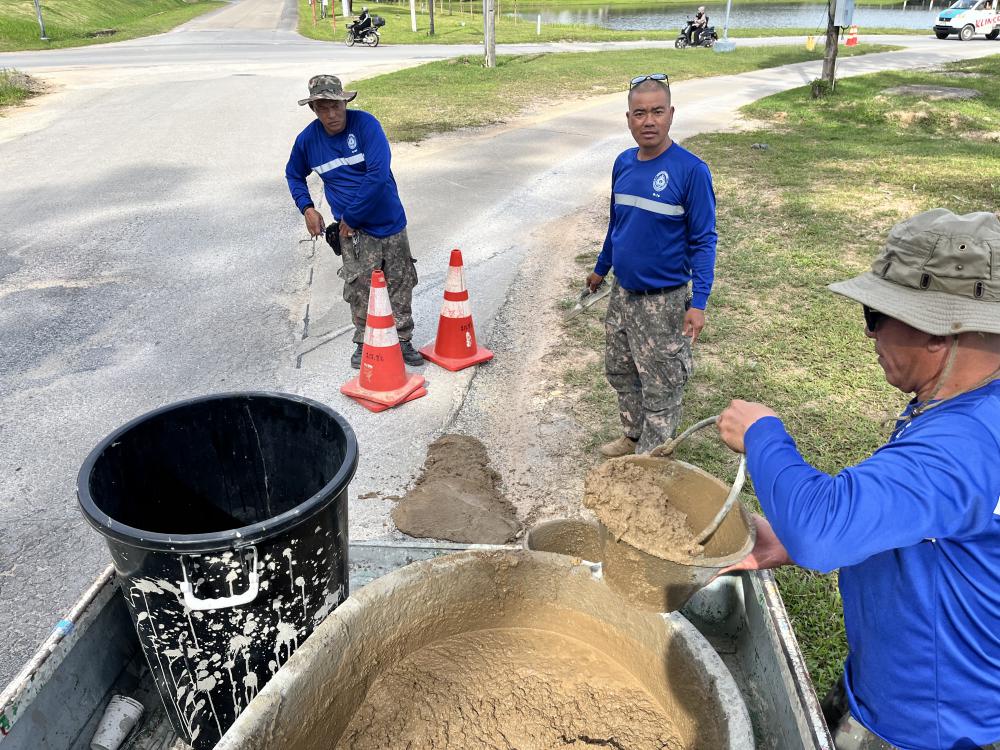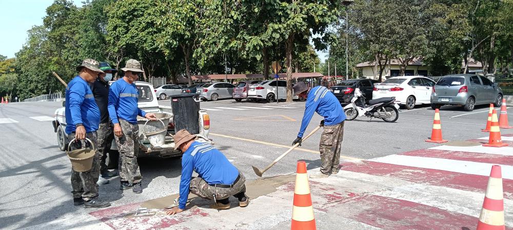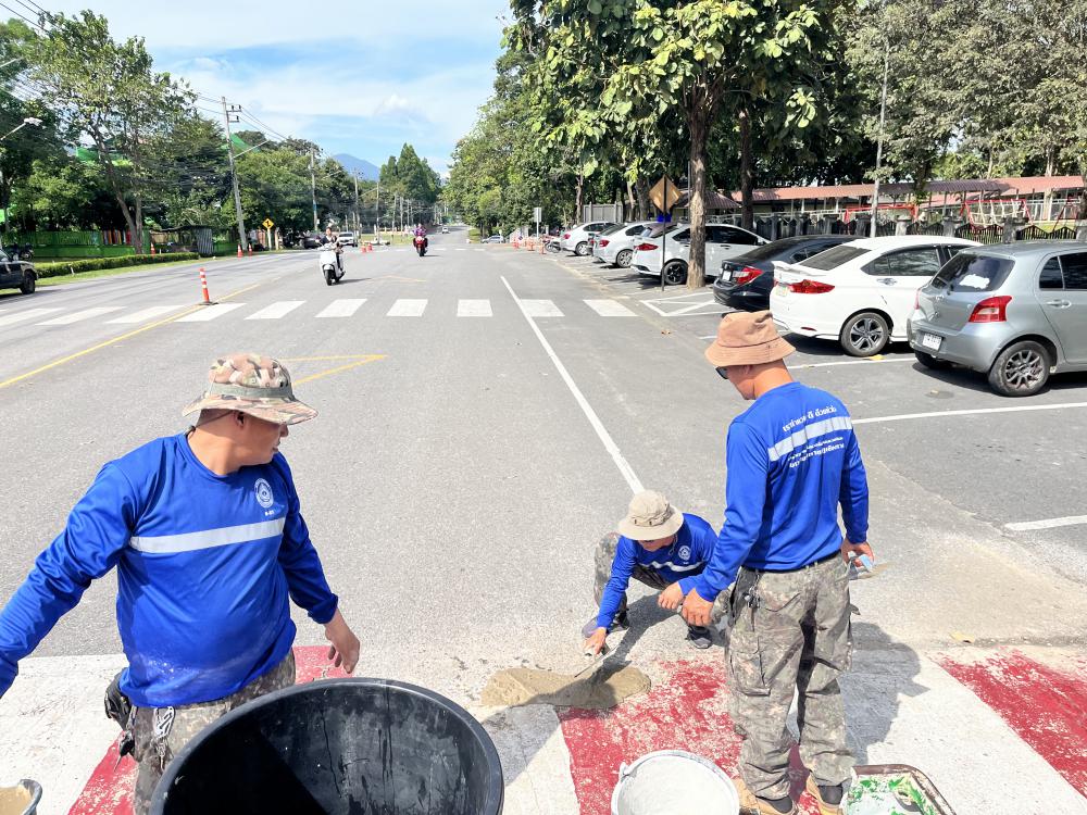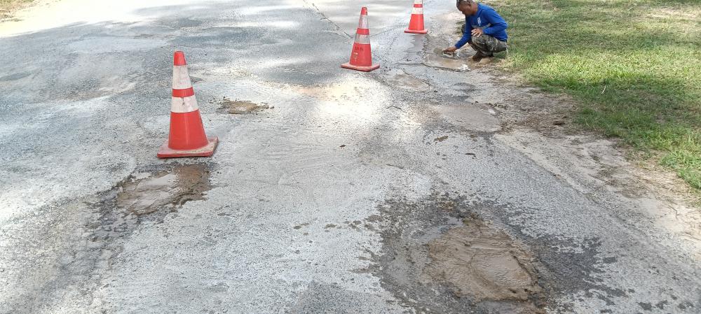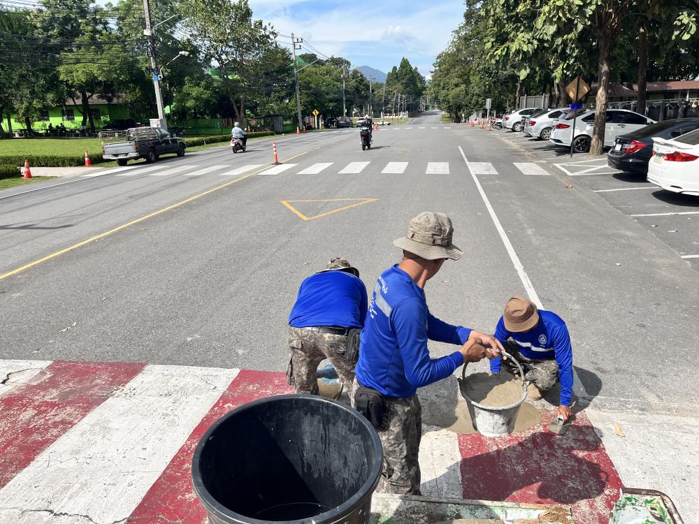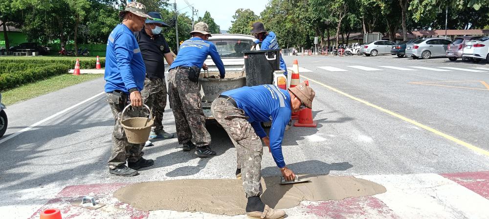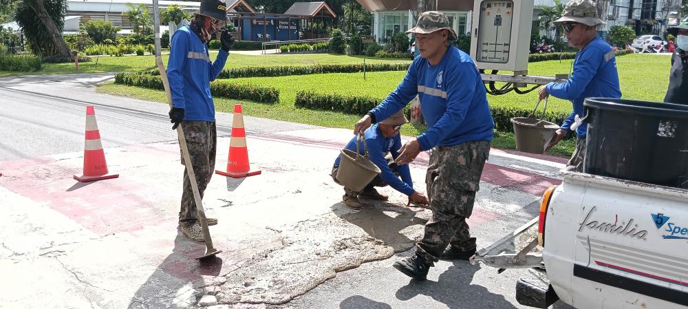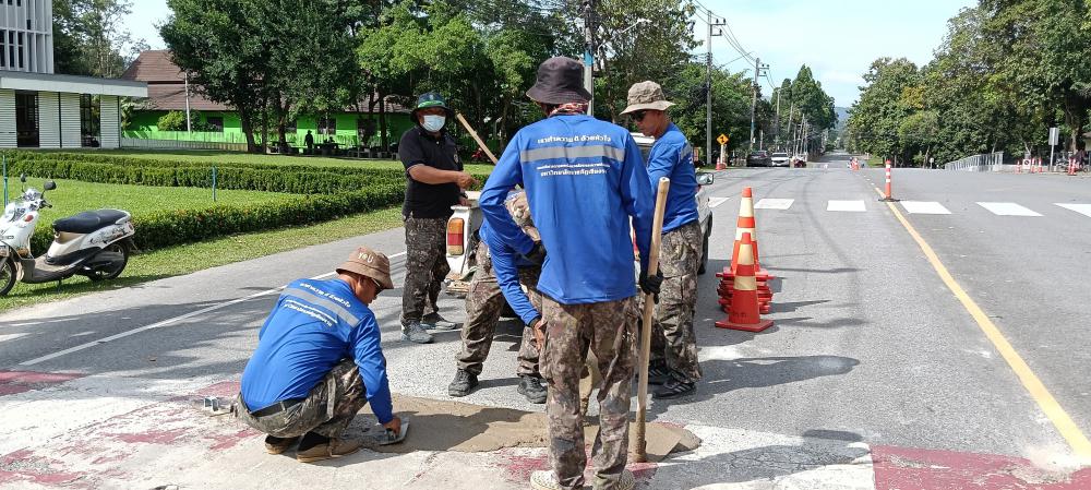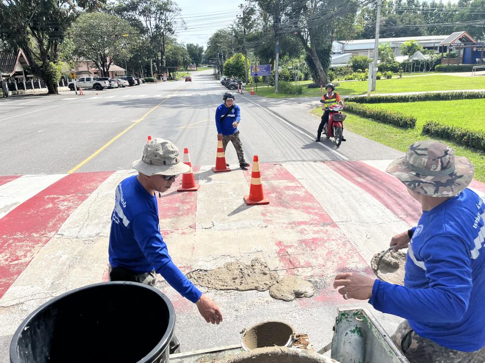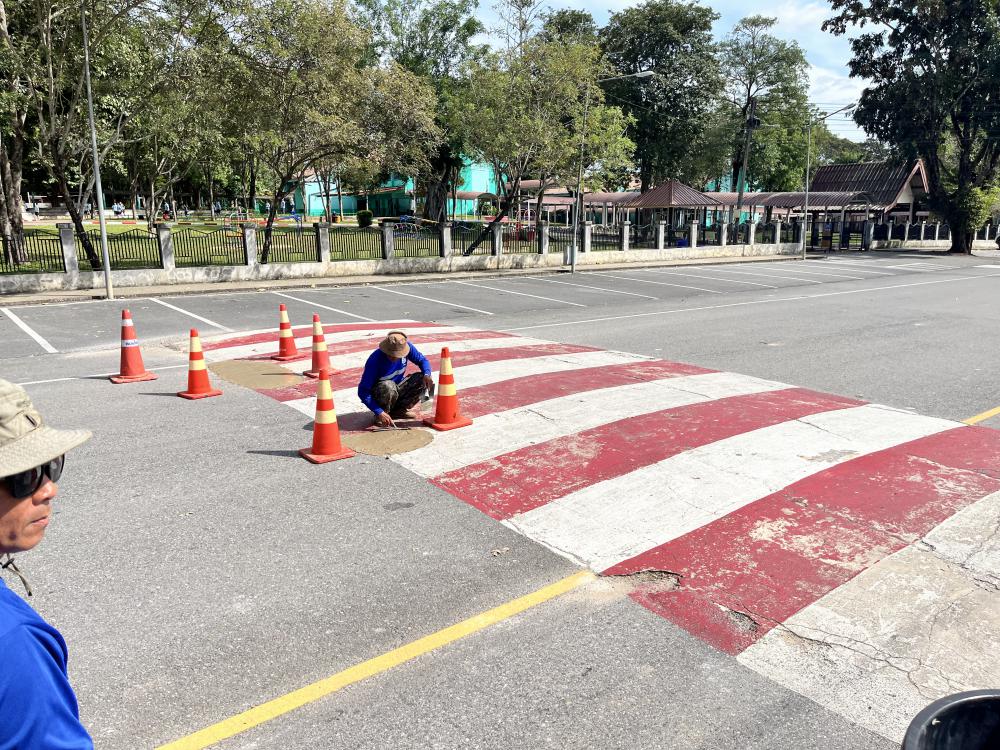 ซ่อมถนนชำรุด เนินชะลอความเร็ว หน้าโรงเรียน สาธิต