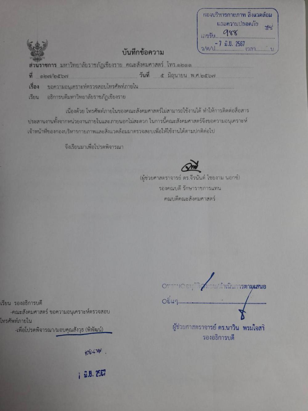 คณะสังคมศาสตร์ ขอความอนุเคราะห์ตรวจสอบระบบโทรศัพท์ภายในจองคณะสังคมศาสตร์